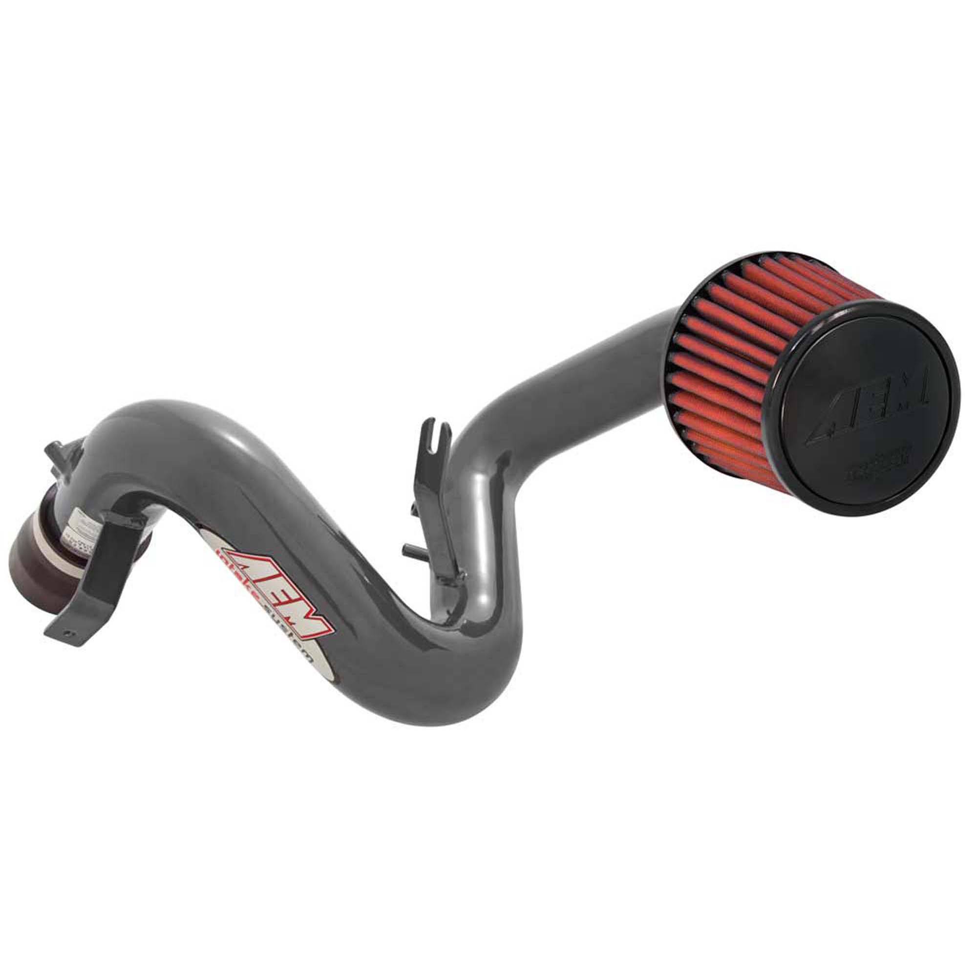 The intake tubing is constructed from mandrel-bent aluminum featuring a durable gunmetal gray powder coated finish. This air intake system was developed to accommodate the engine’s factory emissions control devices including the mass air flow sensor and a couple of replacement silicone vacuum hoses. The tapered cylinder shaped AEM Dryflow air filter is made from an oil-free, synthetic filter media that can be used for up to 100,000 miles before cleaning is needed (depending on driving conditions).