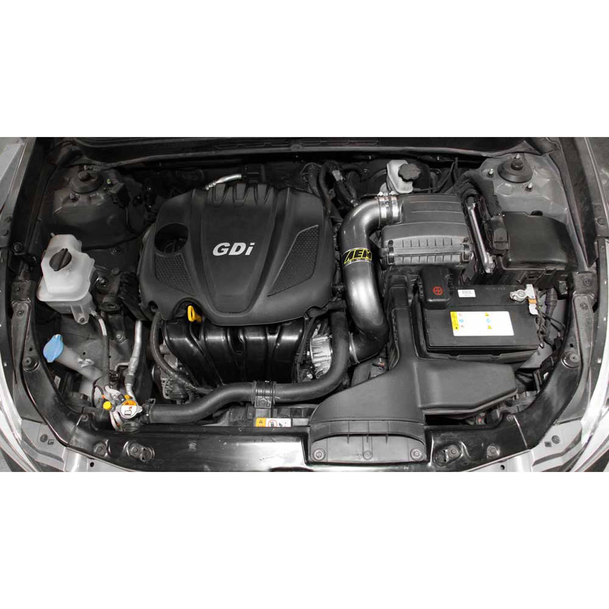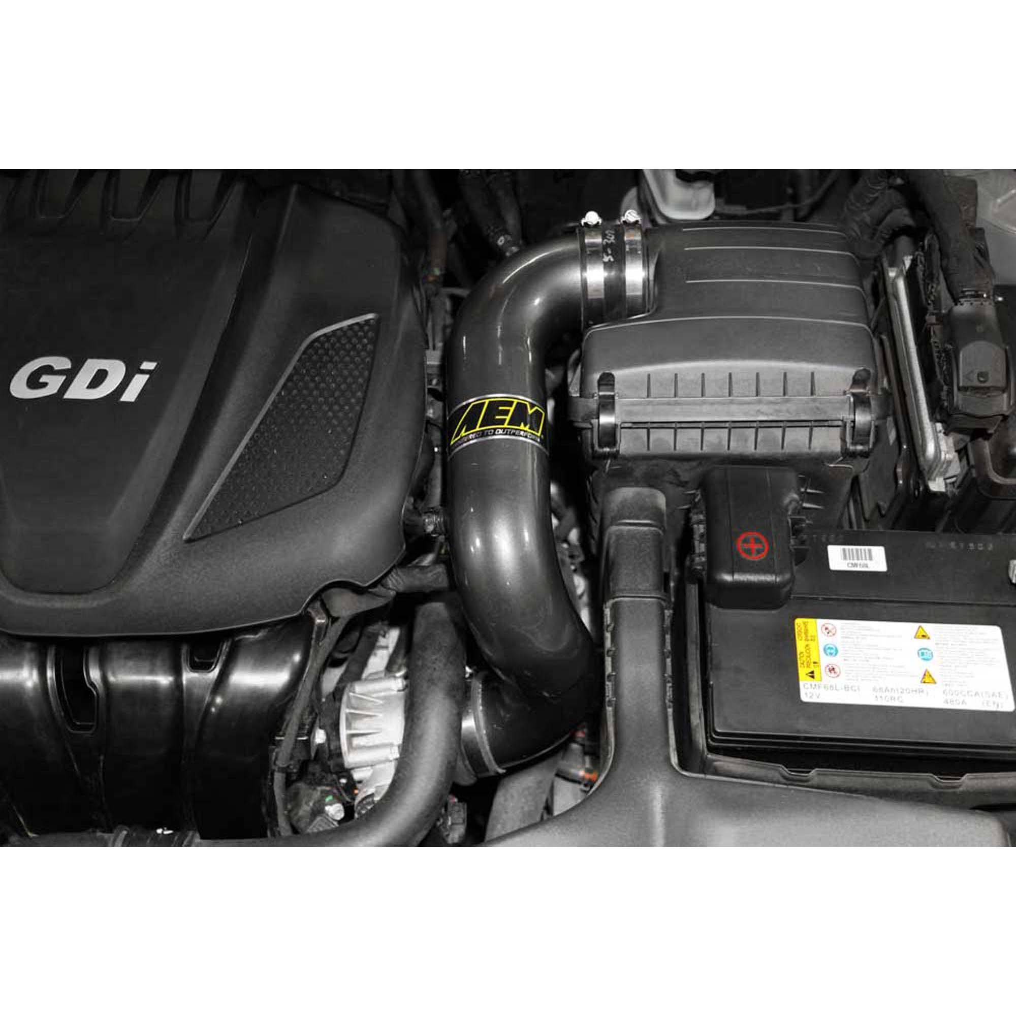 The air filter is relocated to the driver-side wheel well which is designed to reduce intake air temperature and increase horsepower. The intake tubing is constructed from mandrel-bent aluminum featuring a durable gunmetal gray powder coated finish. This air intake system was developed to accommodate the engine’s factory emissions control devices including the mass air flow sensor, a couple replacement silicone breather hoses as well as a replacement radiator hose. The tapered cylinder shaped AEM Dryflow air filter is made from an oil-free, synthetic filter media that can be used for up to 100,000 miles before cleaning is needed (depending on driving conditions).