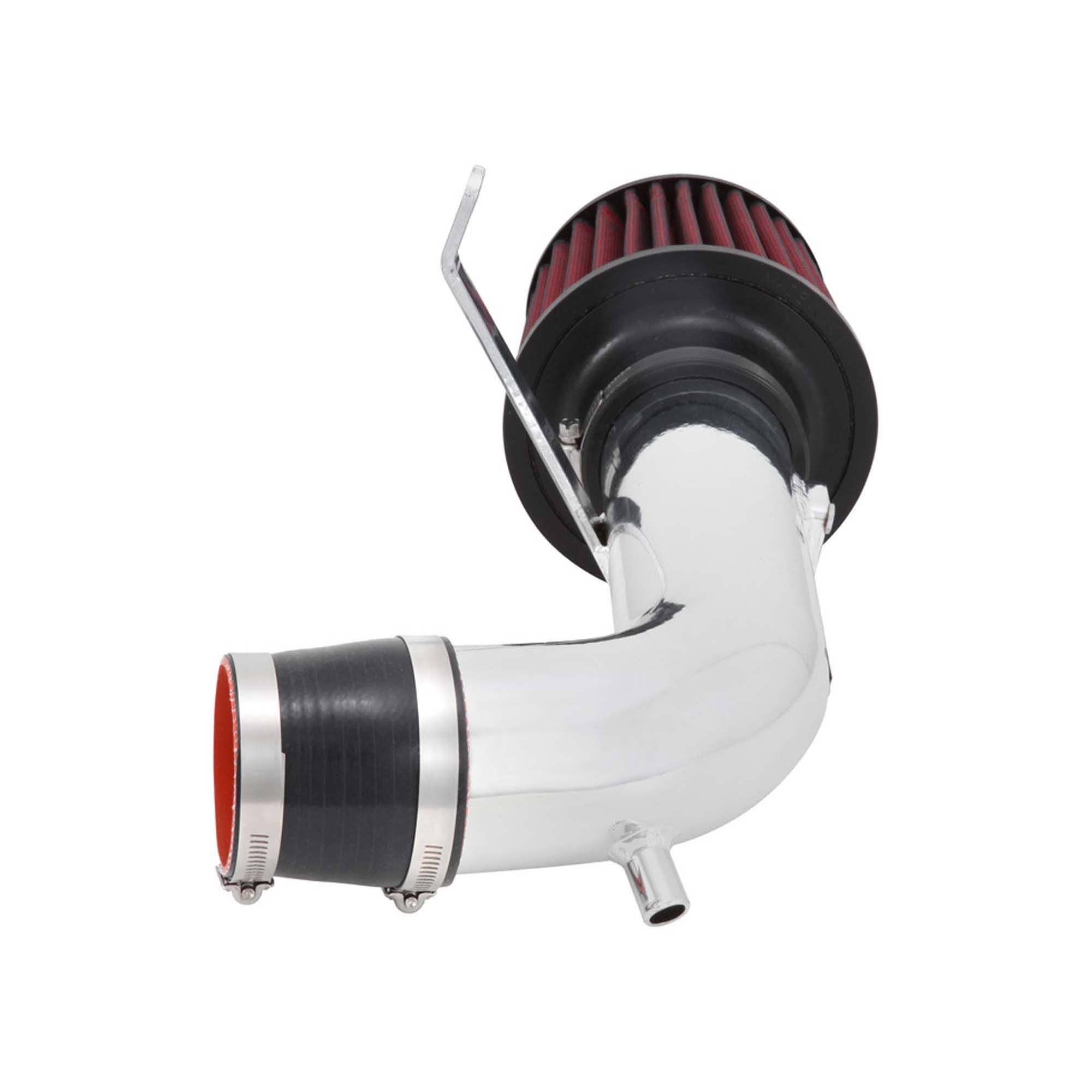 The air filter is located in the original air box space which is designed to reduce intake air temperature and increase horsepower. The intake tubing is constructed from mandrel-bent aluminum featuring a durable chrome-like finish. This air intake system was developed to accommodate the engine’s factory emissions control devices including the mass air flow sensor and PCV hose.