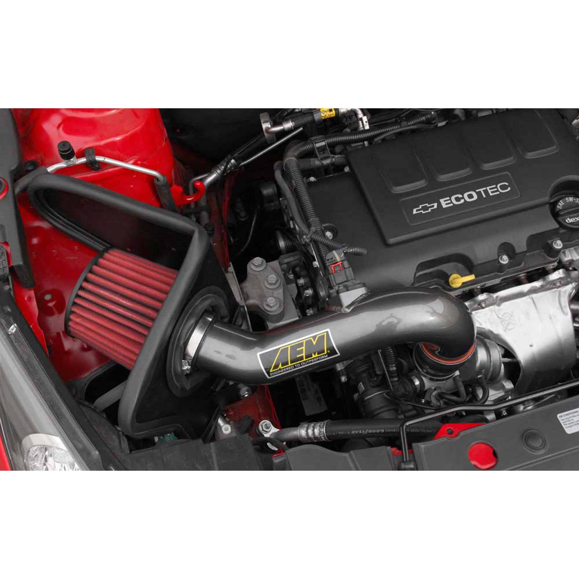 AEM Performance Cold Air Intake Systems produce horsepower and torque gains by replacing your vehicle’s restrictive factory air filter and air intake housing. This air intake system was designed, tuned and dyno-tested to fit specific Chevrolet Cruze models. Air enters the system through an oversized AEM Dryflow synthetic washable air filter for outstanding air flow, filtration and performance.