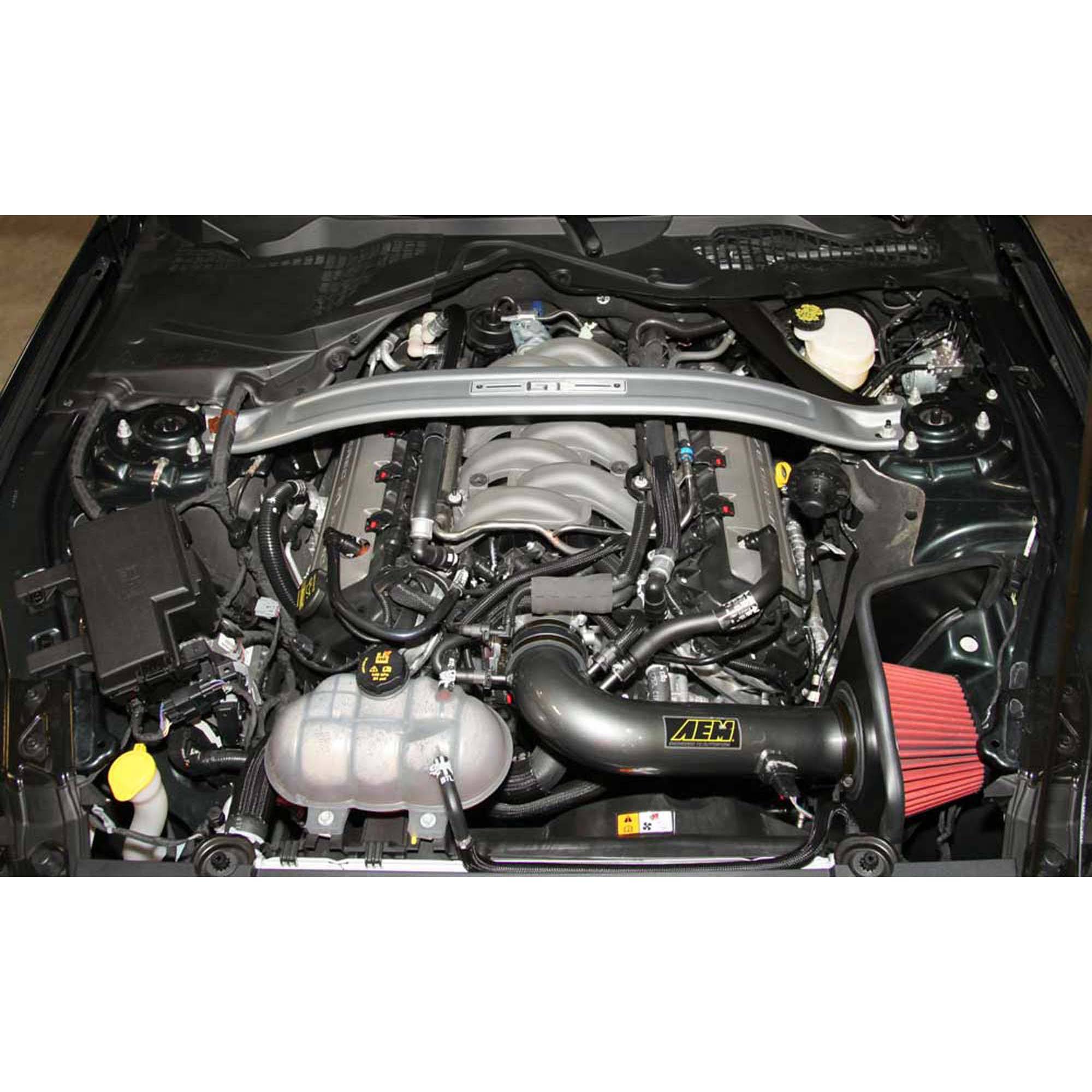 The AEM 21-745C Performance Cold Air Intake System produces horsepower and torque gains by replacing your vehicle’s restrictive factory air filter and air intake housing. This air intake system was designed, tuned and dyno-tested to fit specific Ford Mustang GT models. Air enters the system through an oversized AEM Dryflow synthetic washable air filter for outstanding air flow, filtration and performance.