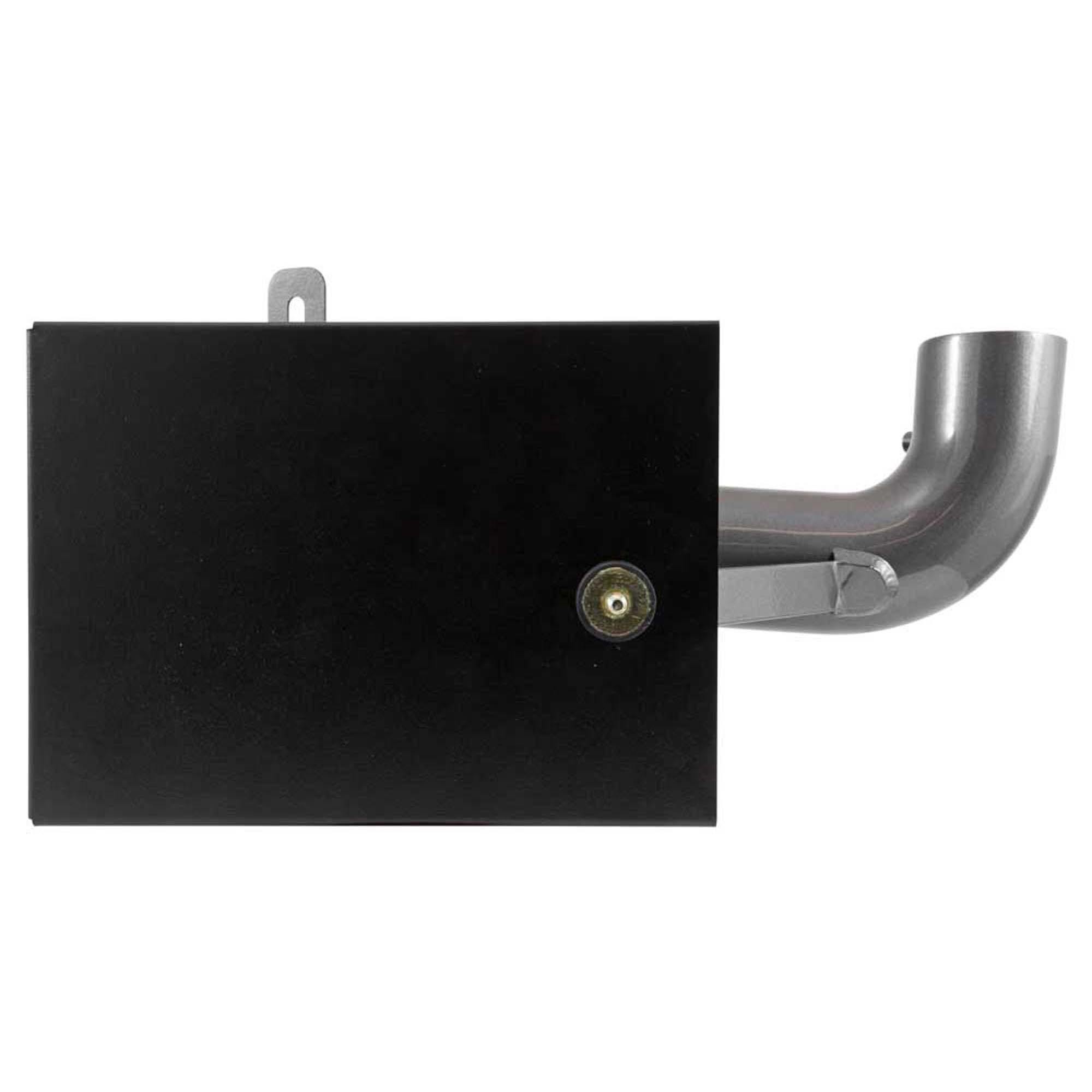 The air filter is located in the original air box space and is protected by a heat shield which is designed to reduce intake air temperature and increase horsepower. The intake tubing is constructed from mandrel-bent aluminum featuring a durable gunmetal gray powder coated finish. This air intake system was developed to accommodate the engine’s factory emissions control devices including the mass air flow sensor and engine breather line.