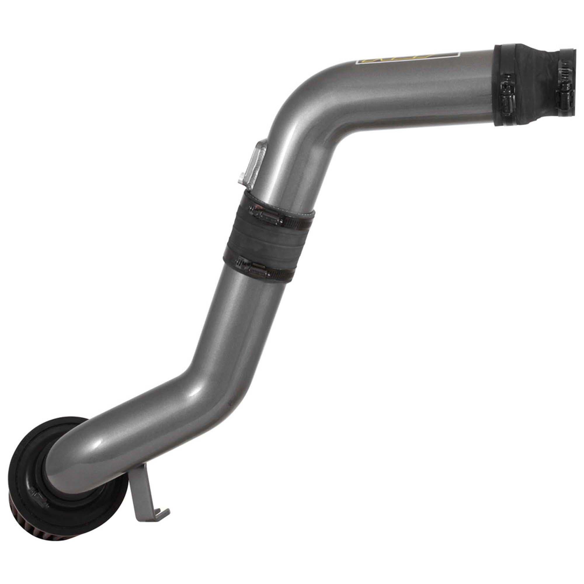 The air filter is placed under the original air box space and above the driver-side wheel well which is designed to pull in cooler outside air and increase horsepower. The air intake tube is constructed from mandrel-bent aluminum featuring a durable gunmetal gray powder coated finish. This air intake system was developed to accommodate the engine’s factory emissions control devices including the mass air flow sensor.