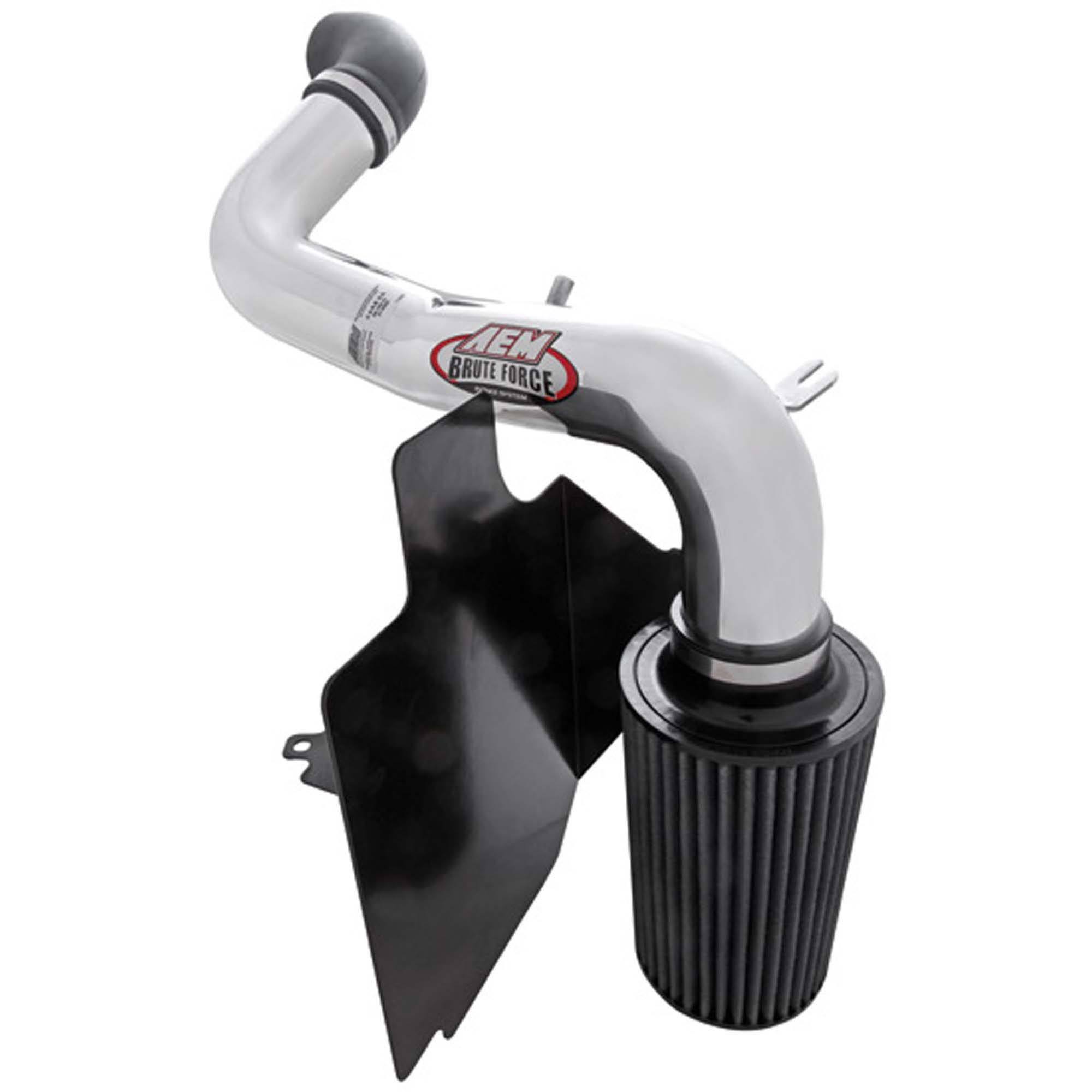 Air enters the system through an extra-large AEM Dryflow synthetic washable air filter for outstanding air flow, filtration and performance. The air filter is relocated to the driver-side wheel well and is protected by a heat shield which is designed to reduce intake air temperature and increase horsepower. The intake tubing is constructed from mandrel-bent aluminum featuring a durable chrome-like finish.