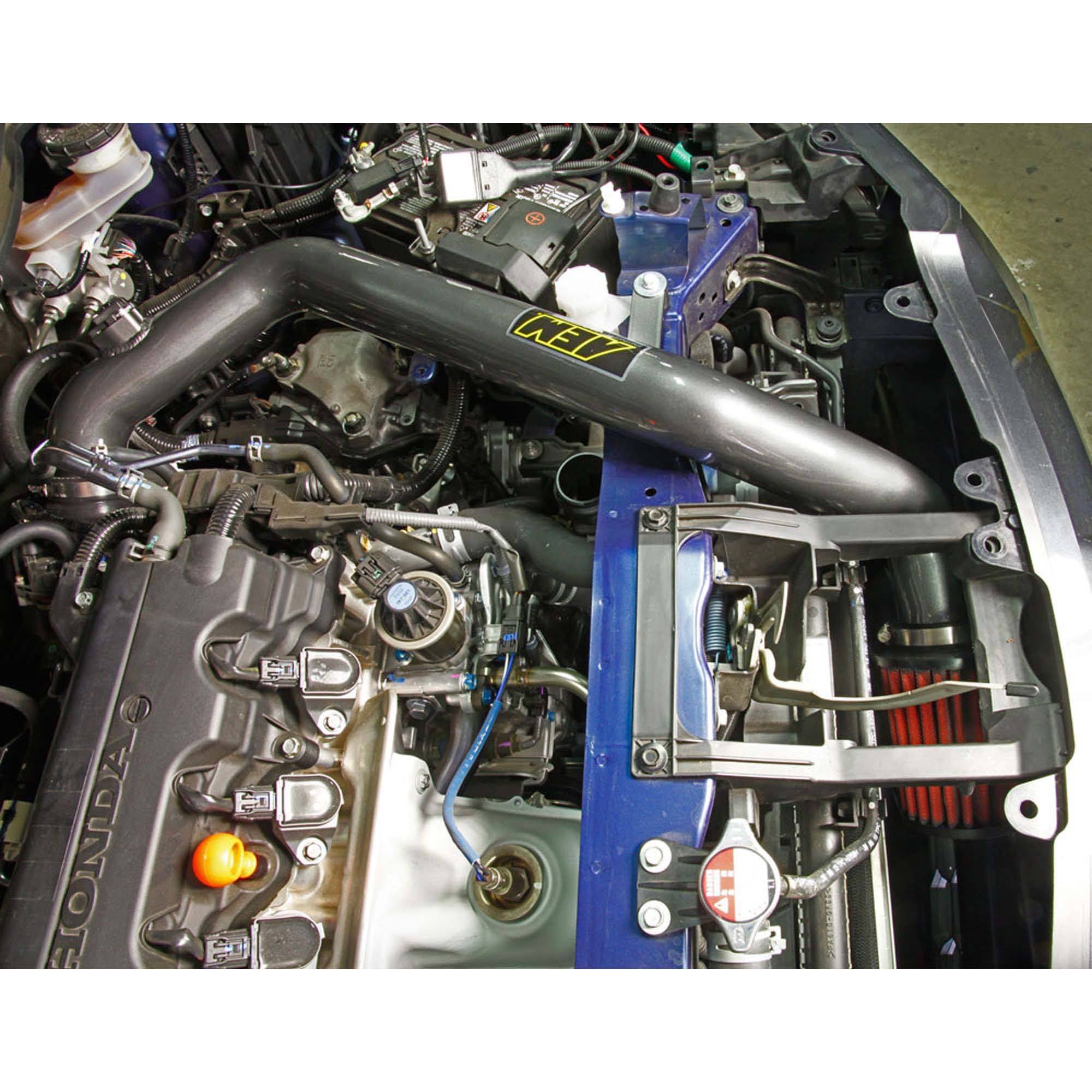 The air filter is relocated to the front of your car near incoming air to reduce intake air temperature and increase horsepower. The intake tubing is constructed from mandrel-bent aluminum featuring a durable gunmetal gray powder coated finish. This air intake system was developed to accommodate the engine’s factory emissions control devices including the mass air flow sensor and crank case breather hose.