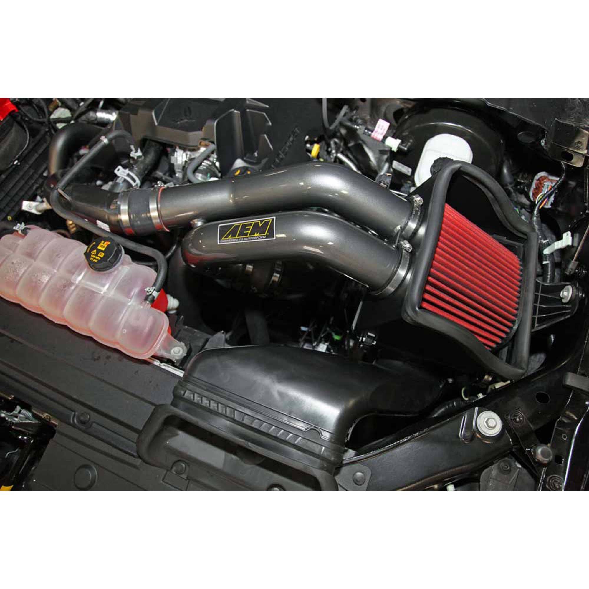 The AEM 21-8128DC Performance Cold Air Intake System produces horsepower and torque gains by replacing your vehicle’s restrictive factory air filter and air intake housing. This air intake system was designed, tuned and dyno-tested to fit specific Ford F150 EcoBoost models. Air enters the system through an oversized AEM Dryflow synthetic washable air filter for outstanding air flow, filtration and performance.