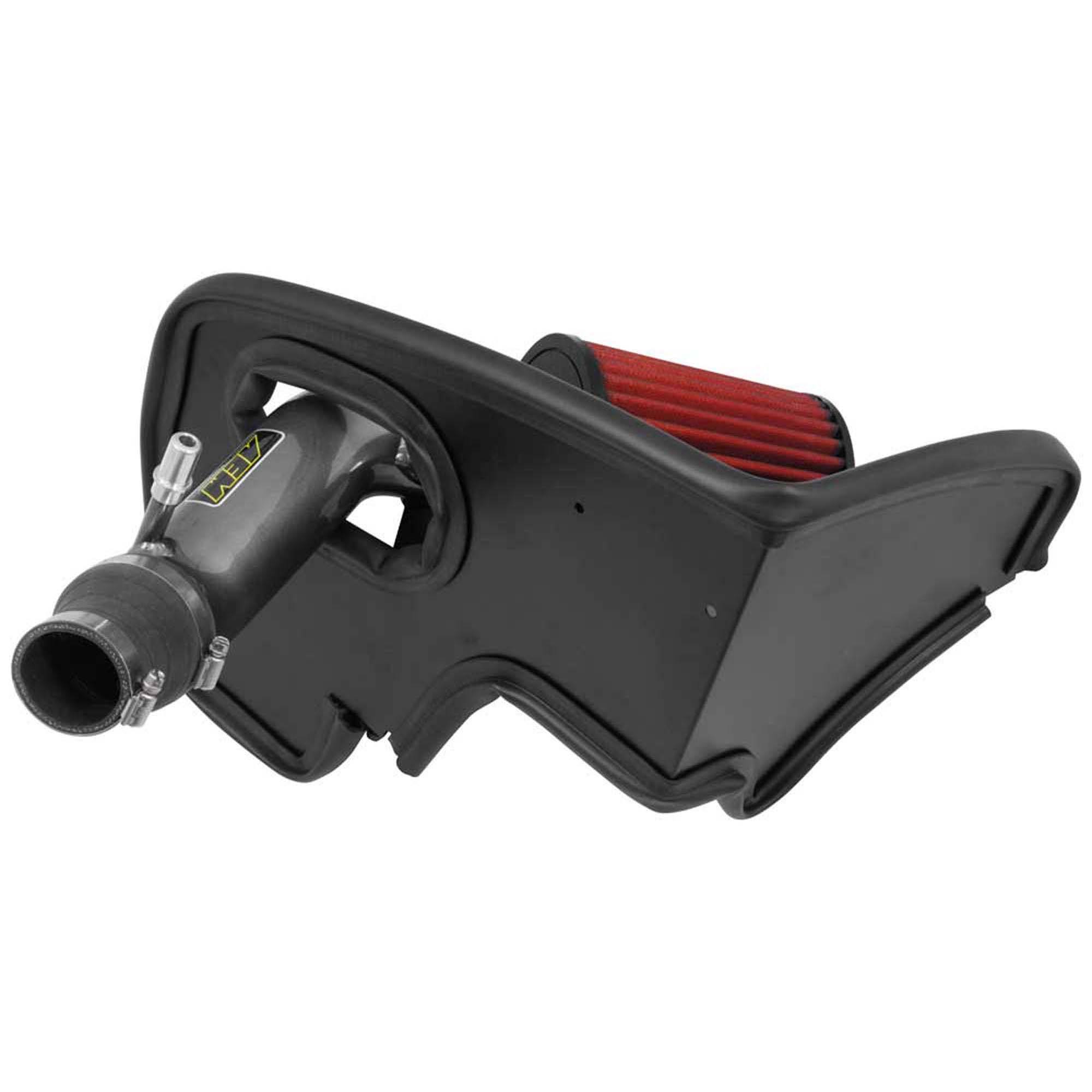Air enters the system through an oversized AEM Dryflow synthetic washable air filter for outstanding air flow, filtration and performance. The air filter is located in the original air box space and is protected by a heat shield which is designed to reduce intake air temperature and increase horsepower. The air intake tubing is constructed from mandrel-bent aluminum featuring a durable gunmetal gray powder coated finish.