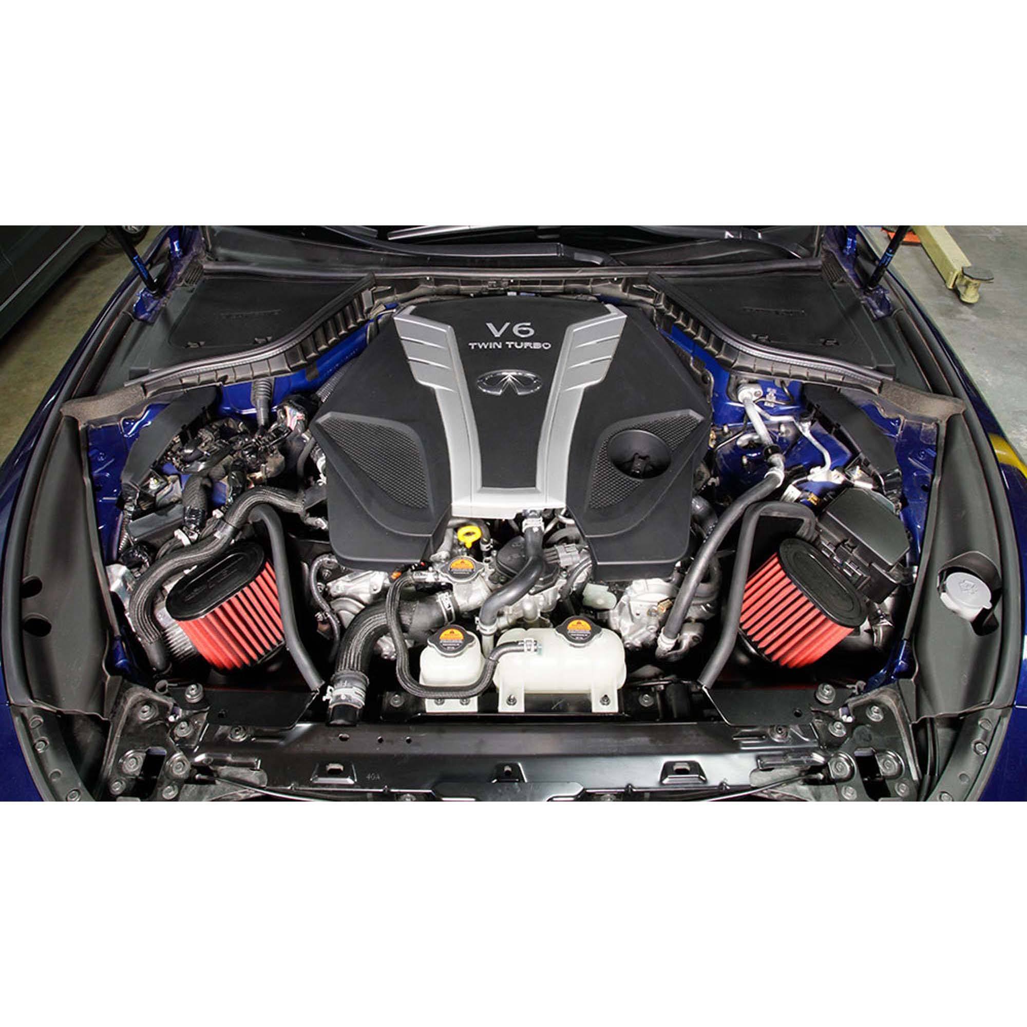 The AEM 21-819 Performance Cold Air Intake System replaces both the left and right side housings. This air intake was designed to fit some Infinity Q50 and Q60 models. Both banks uses an oval shaped AEM Dryflow Air Filter. The filter media is made from a synthetic fiber that does not require oiling.