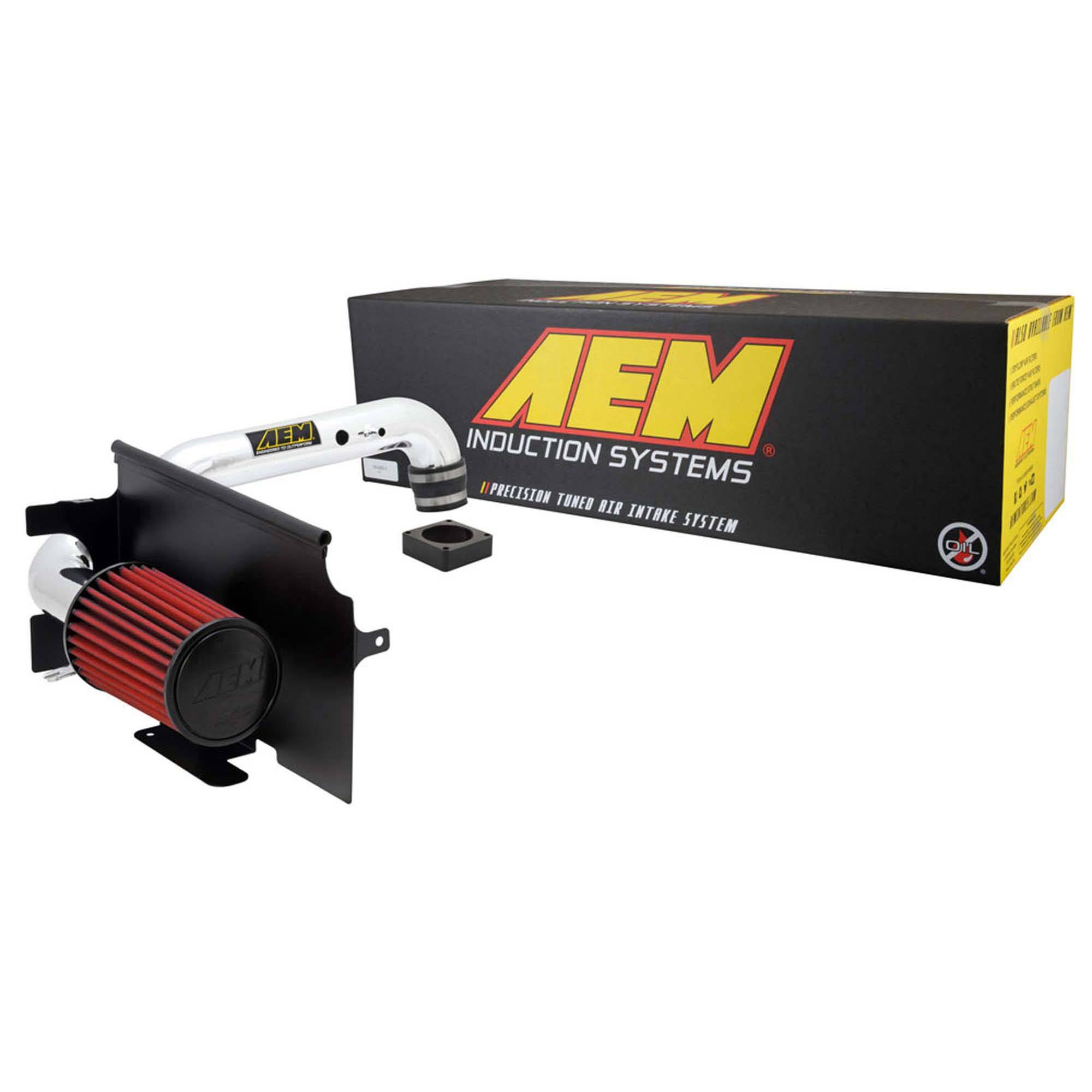 Air enters the system through an extra-large AEM Dryflow synthetic washable air filter for outstanding air flow, filtration and performance. The air filter is located in the original air box space and is protected by a heat shield which is designed to reduce intake air temperature and increase horsepower. The intake tubing is constructed from mandrel-bent aluminum featuring a durable chrome-like finish.