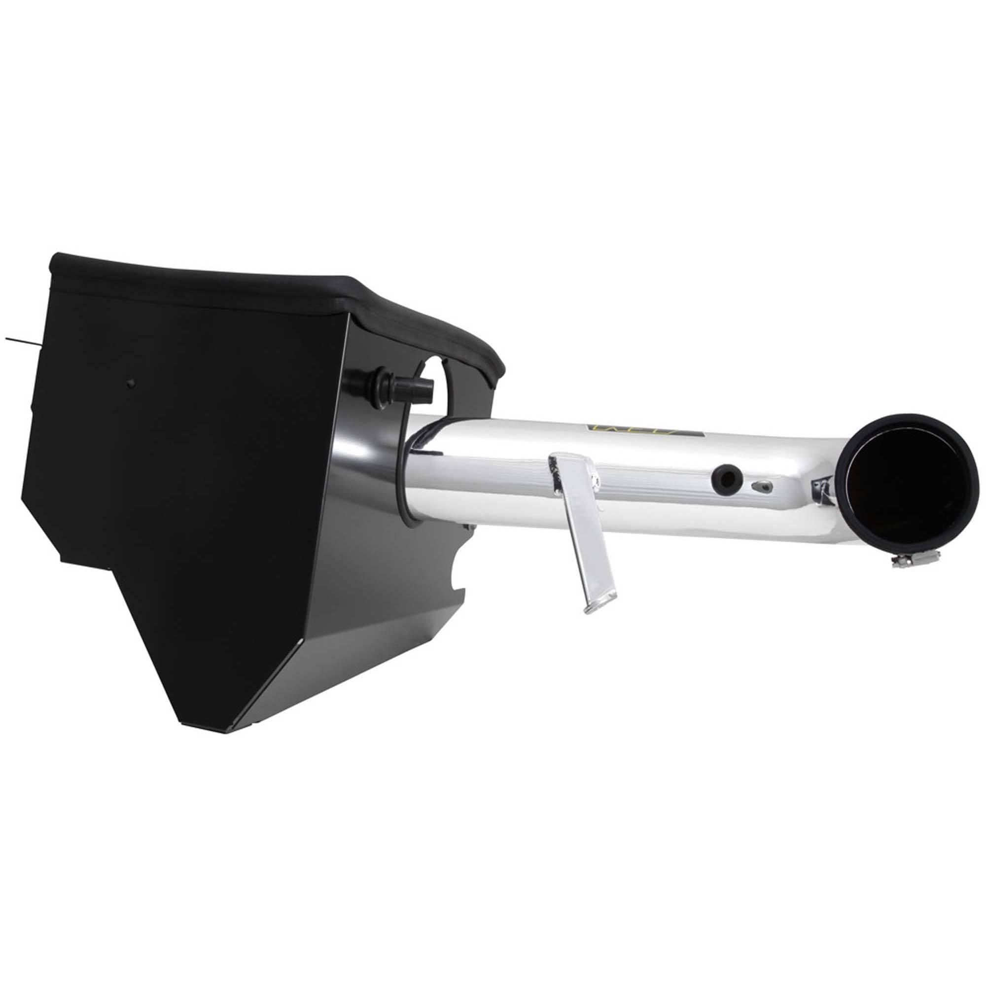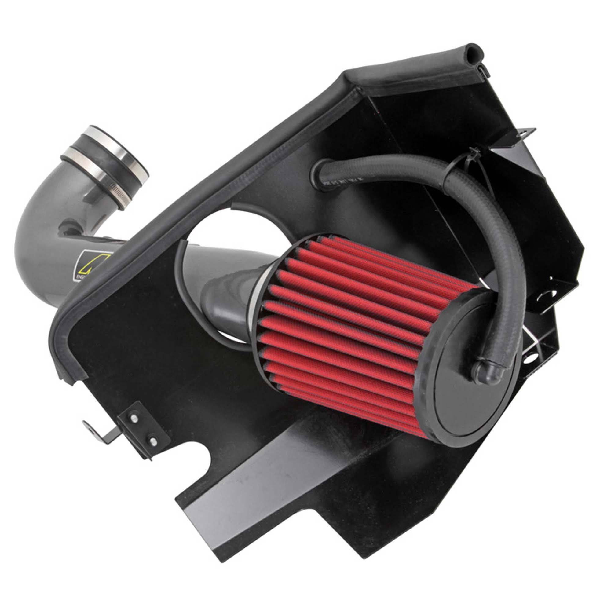 The intake tubing is constructed from mandrel-bent aluminum featuring a durable gunmetal gray powder coated finish. This air intake system was developed to accommodate the engine’s factory emissions control devices including the IAT sensor and crank case breather hose.