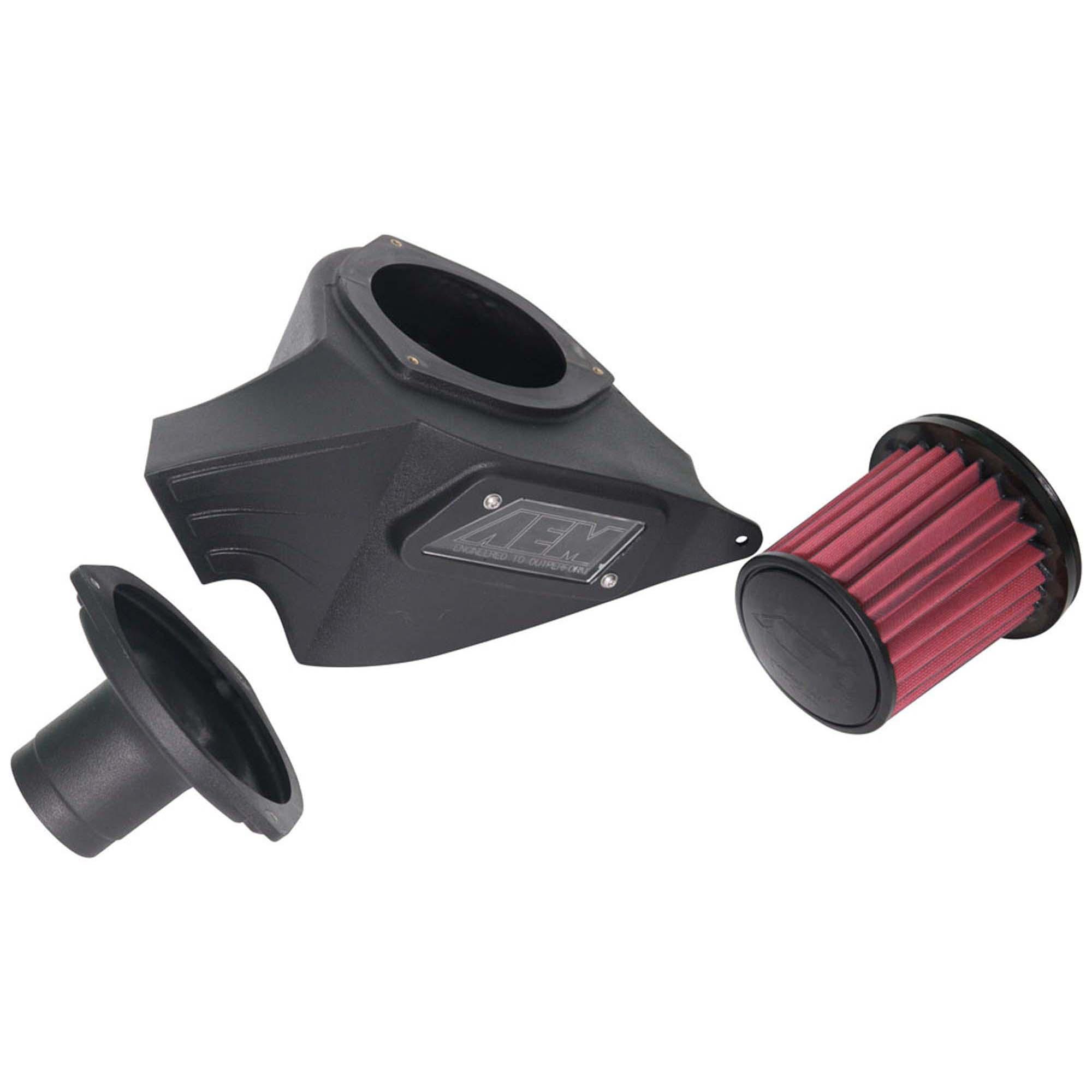 through replacement air duct and into a roto-molded, aerodynamic AEM air box containing an oversized AEM Dryflow synthetic washable air filter for outstanding air flow, filtration and performance.The cone shaped AEM Dryflow air filter is made from an oil-free, synthetic filter media that can be used for up to 100,000 miles before cleaning is needed (depending on driving conditions).