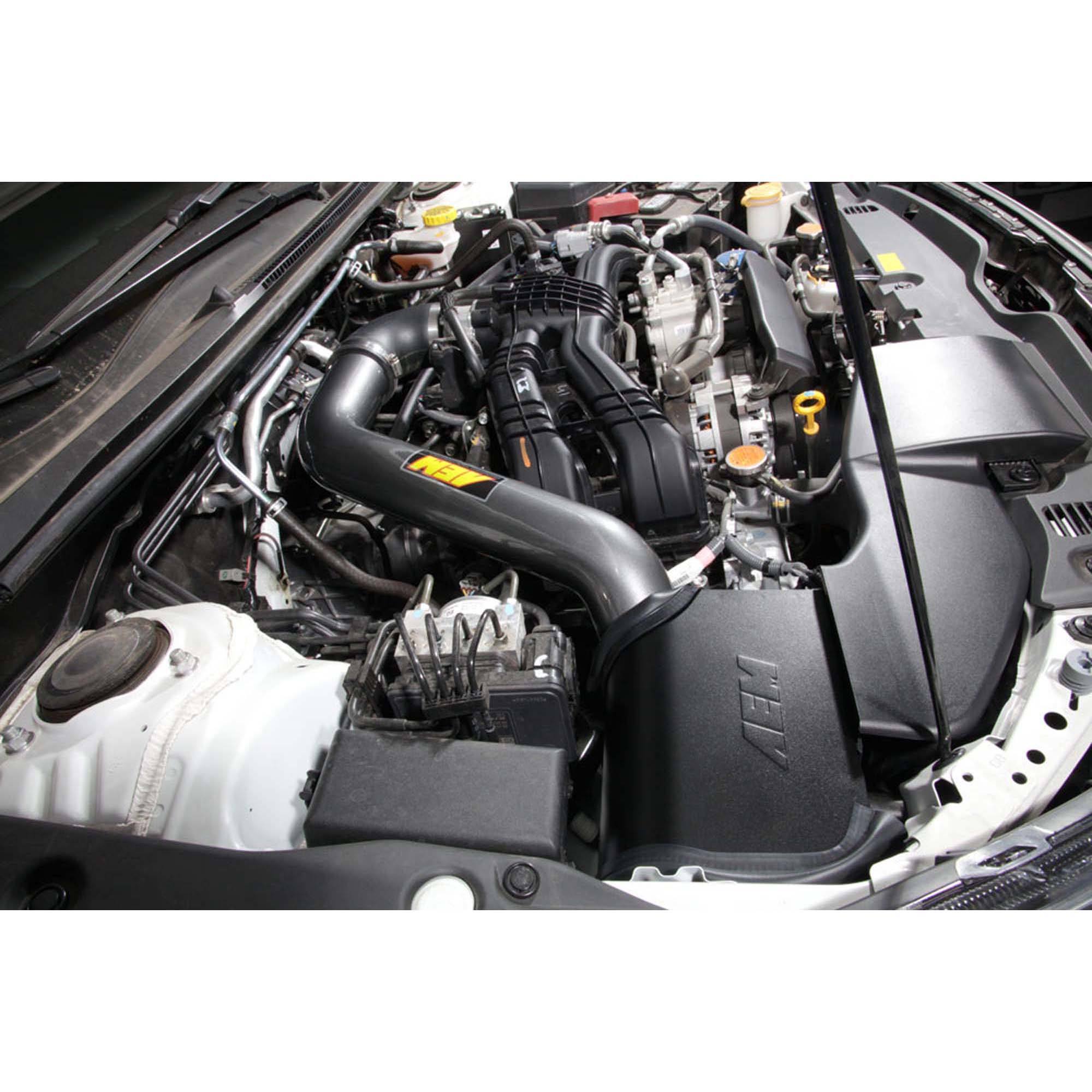 The cone-shaped AEM Dryflow air filter is made from an oil-free, synthetic filter media that can be used for up to 100,000 miles before cleaning is needed (depending on driving conditions). A custom shaped heat shield with edge trim lining is included to keep engine bay heat from the air intake. The air intake tube is constructed from mandrel-bent aluminum featuring a durable gunmetal gray powder coated finish.
