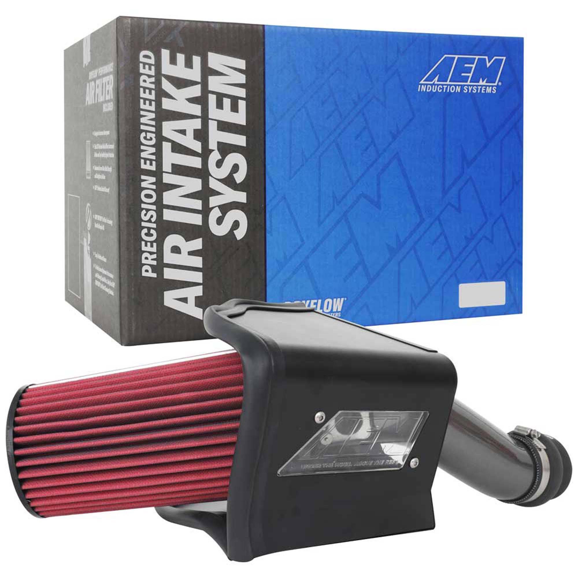 AEM® cold air intake systems are designed to increase horsepower and torque. The system includes an oversized AEM DRYFLOW® synthetic washable air filter, engineered to provide outstanding airflow, filtration, and performance, and also features a mandrel-bent aluminum intake tube and high quality hardware. The oversized, conical filter design allows you to go up to 100,000 miles between filter services under normal highway driving conditions.