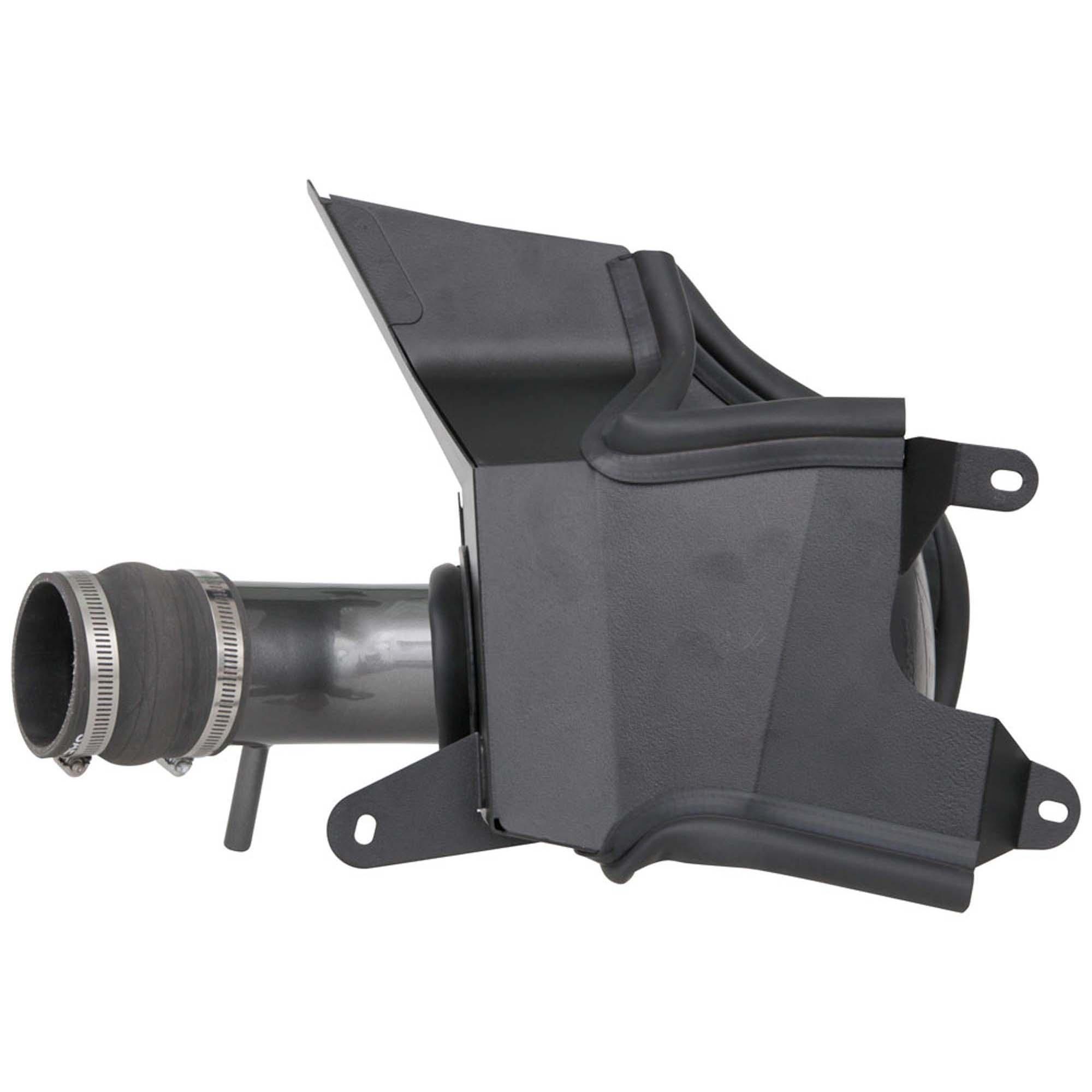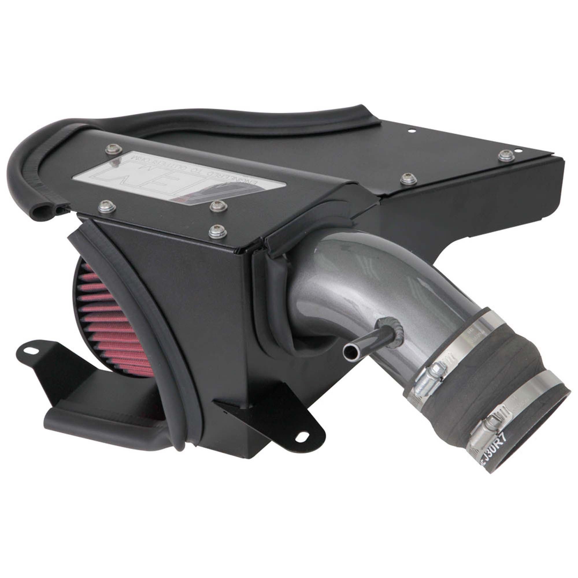 The air filter is located in the original air box space and is protected by a heat shield which is designed to reduce intake air temperature and increase horsepower. The air intake tube is constructed from mandrel-bent aluminum featuring a durable gunmetal gray powder coated finish. This air intake system was developed to accommodate the engine’s factory emissions control devices including the mass airflow sensor and breather tube. The tapered cylinder shaped AEM Dryflow air filter is made from an oil-free, synthetic filter media that can be used for up to 100,000 miles before cleaning is needed (depending on driving conditions).