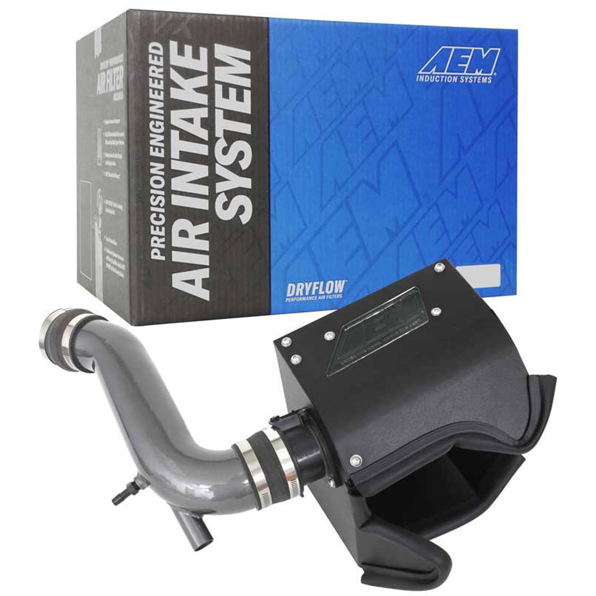 The air intake tube is constructed from mandrel-bent aluminum featuring a durable gunmetal gray powder coated finish. A custom shaped heat shield with lid is included. The tapered cylinder shaped AEM Dryflow air filter is made from an oil-free, synthetic filter media that can be used for up to 100,000 miles before cleaning is needed (depending on driving conditions). This Air Intake System is backed by AEM’s Lifetime Limited Warranty.