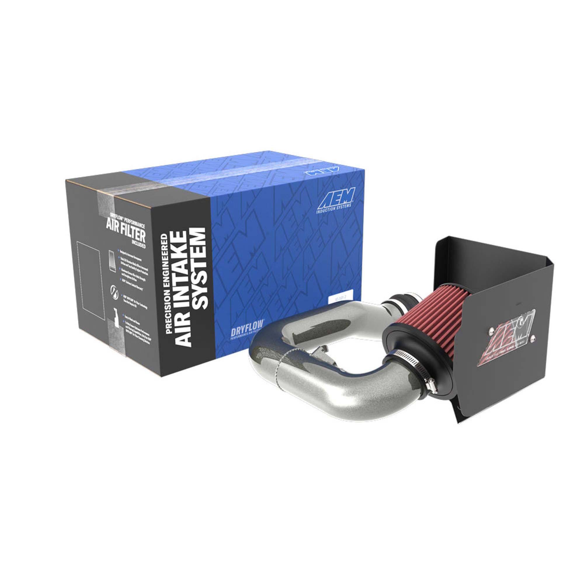 The air intake tube is constructed from mandrel-bent aluminum featuring a durable gunmetal gray powder coated finish. A custom shaped heat shield with lid is included. The tapered cylinder shaped AEM Dryflow air filter is made from an oil-free, synthetic filter media that can be used for up to 100,000 miles before cleaning is needed (depending on driving conditions).