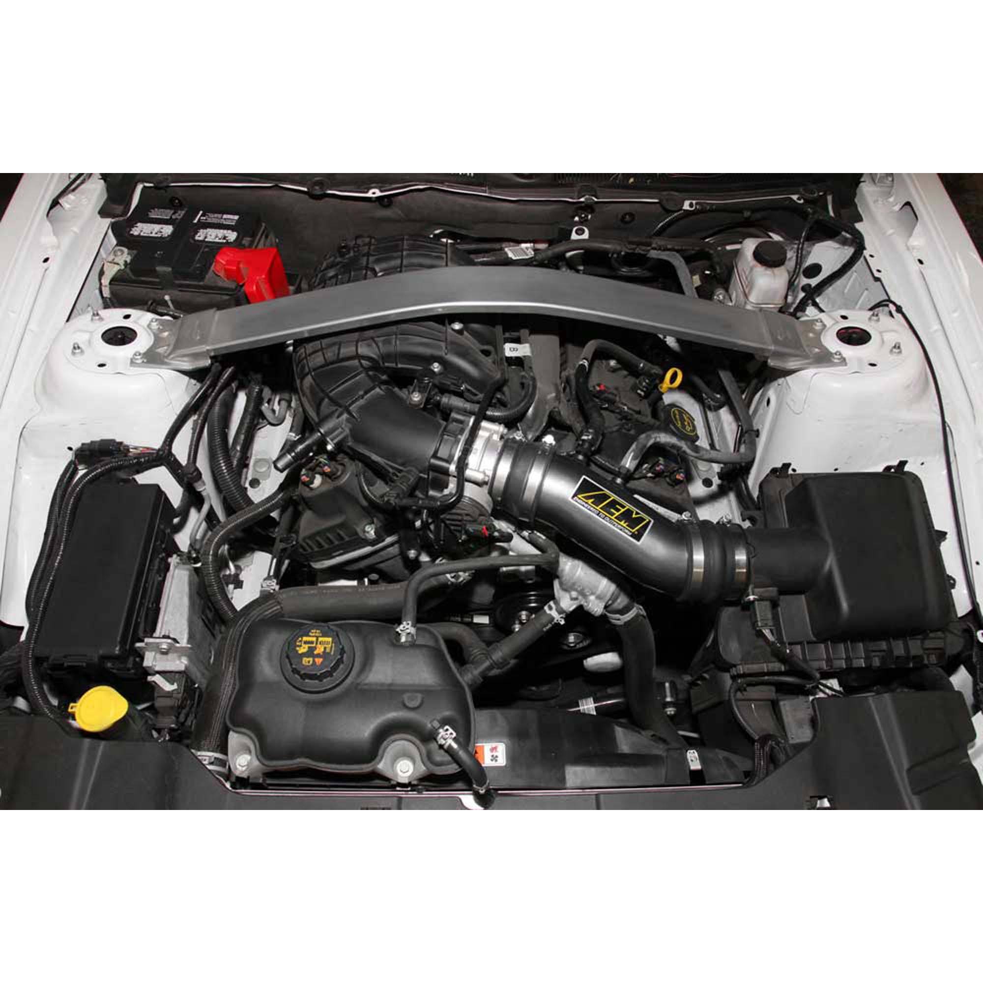The AEM 22-686C Performance Air Intake System is a free-flowing, mandrel-bent aluminum tube air induction system designed to replace the restrictive factory air filter and air intake tubing while retaining the factory air box on some Ford Mustang V6 models. The air intake system comes with a replacement AEM high-flow air filter and a free-flowing aluminum intake tube that easily connects to your vehicle’s factory air box and engine throttle body to dramatically increase air flow into your engine. With more air flowing through the custom-tuned intake tube you experience more horsepower and acceleration throughout the engine’s RPM range.