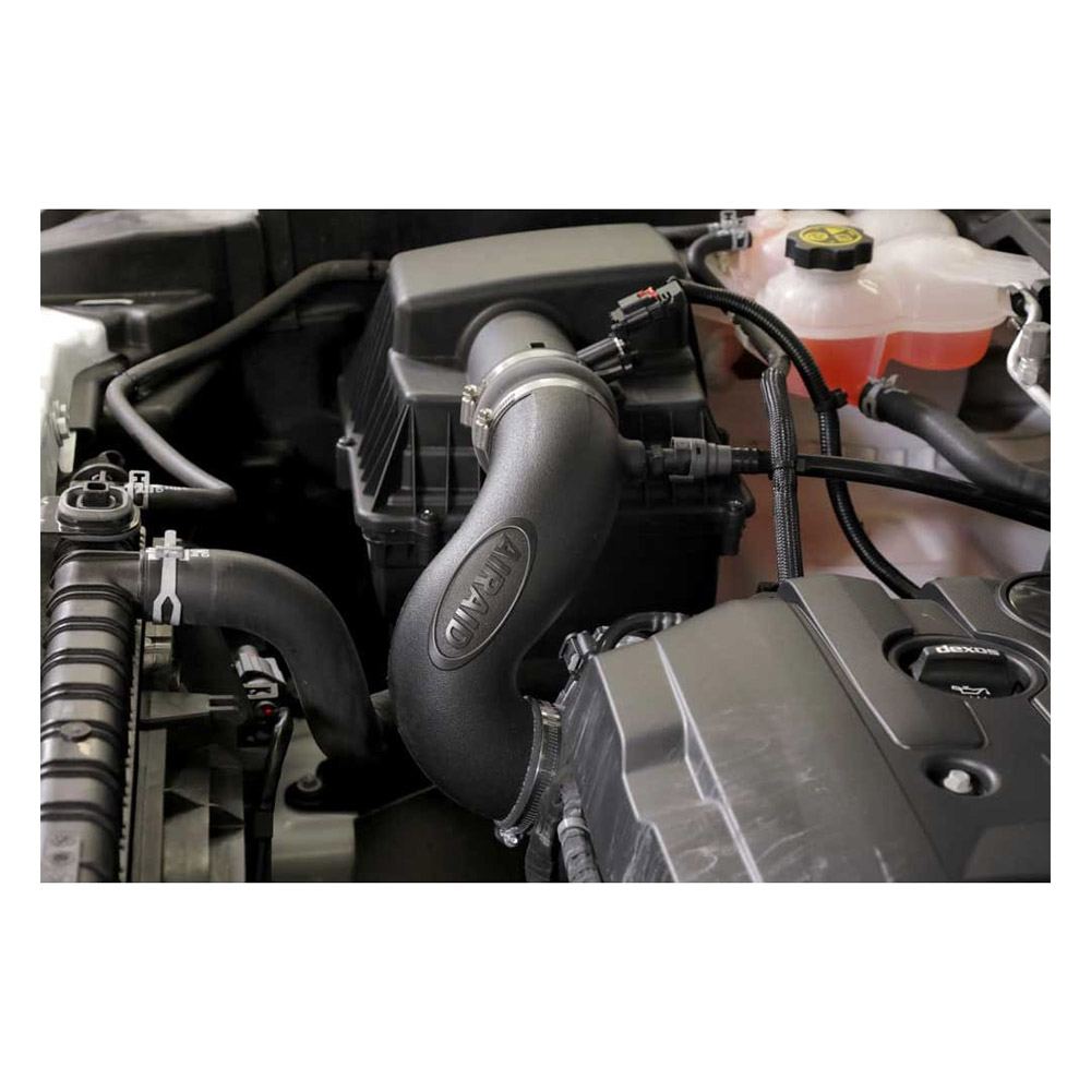 The AIRAID Jr. Kit targets the restrictive elements of factory intake systems, the intake tube and the paper filter, in order to help boost horsepower and mileage. This air intake kit offers a simple, economical introduction into the performance aftermarket with the introduction of an AIRAID Premium Direct-Fit Replacement Filter and an AIRAID Modular Intake Tube.