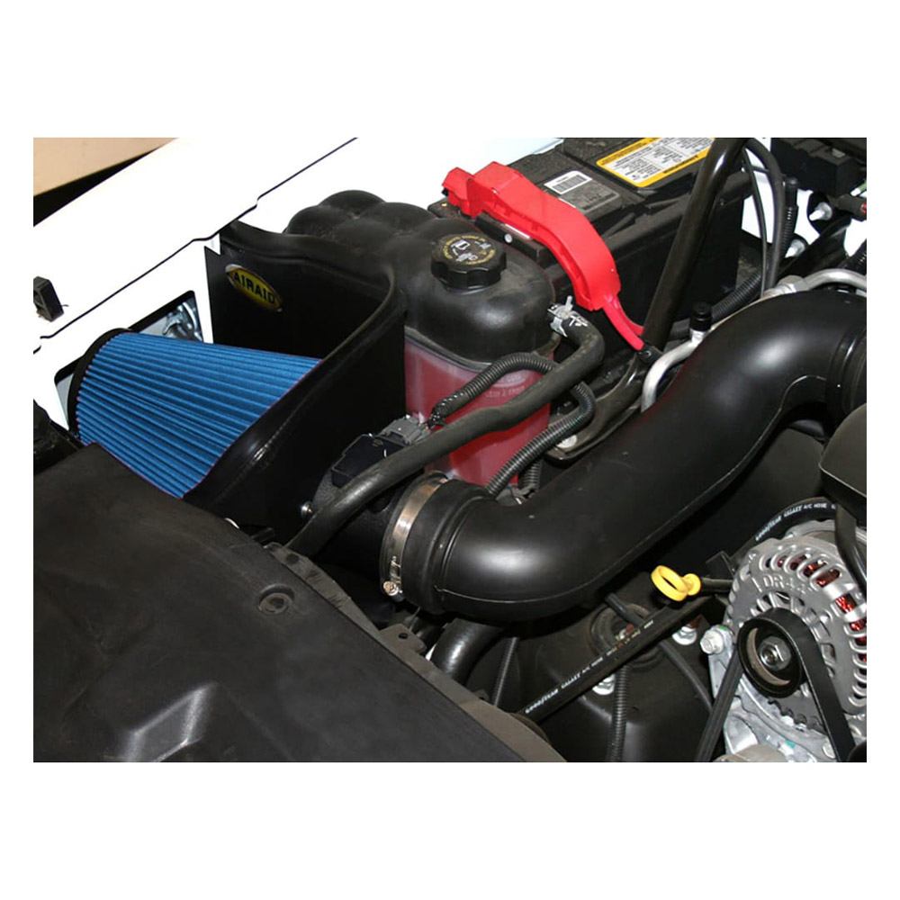 The panels also keep the filter isolated from the hot engine compartment air by sealing to the underside of the hood via blade-style weather stripping. This air box system connects to the factory air intake tube. The AIRAID premium air filter is washable and reusable, less restrictive than traditional paper, and assures superior filtration.