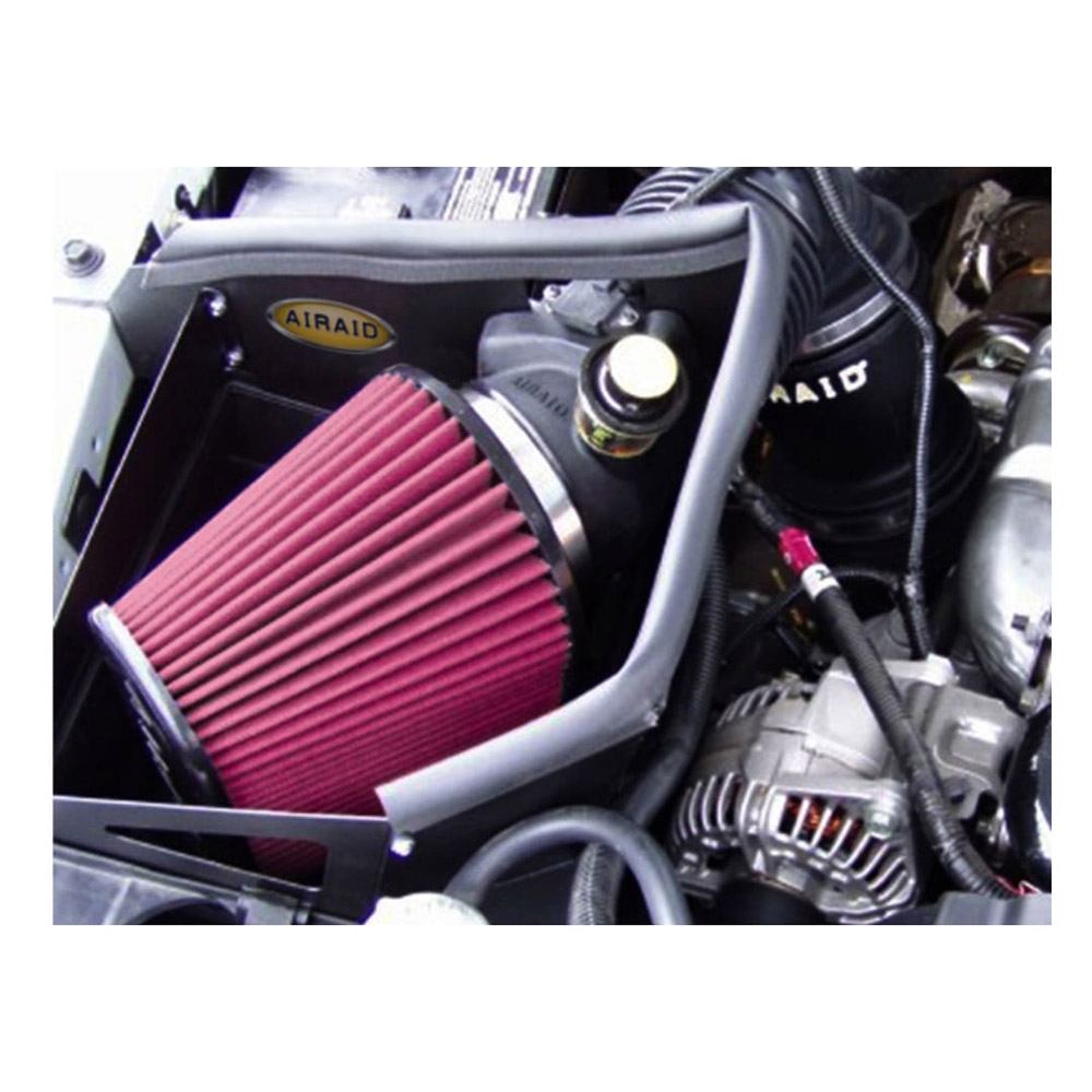 This air box system connects to the factory air intake tube. The AIRAID premium air filter is washable and reusable, less restrictive than traditional paper, and assures superior filtration. The AIRAID Air Box System is easy to install with common hand tools.