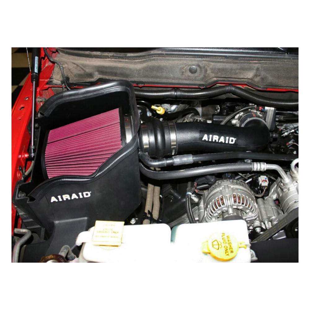 Housed inside the air box is an AIRAID premium air filter for outstanding air flow and filtration. Air is directed through a new air intake tube constructed of cross-linked, high-density polyethylene that is designed using extensive computer modeling to maintain proper mass air flow readings and calibration.