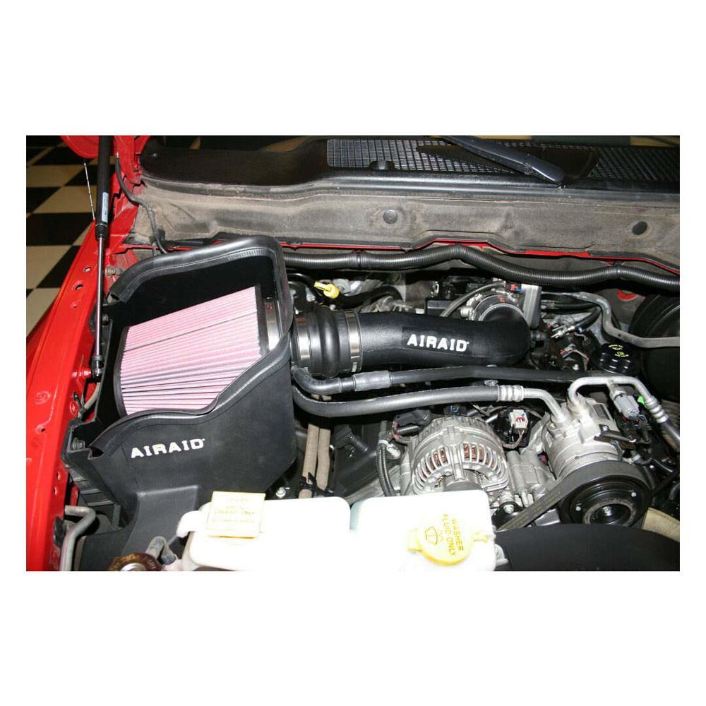 Housed inside the air box is an AIRAID premium air filter for outstanding air flow and filtration. Air is directed through a new air intake tube constructed of cross-linked, high-density polyethylene that is designed using extensive computer modeling to maintain proper mass air flow readings and calibration.