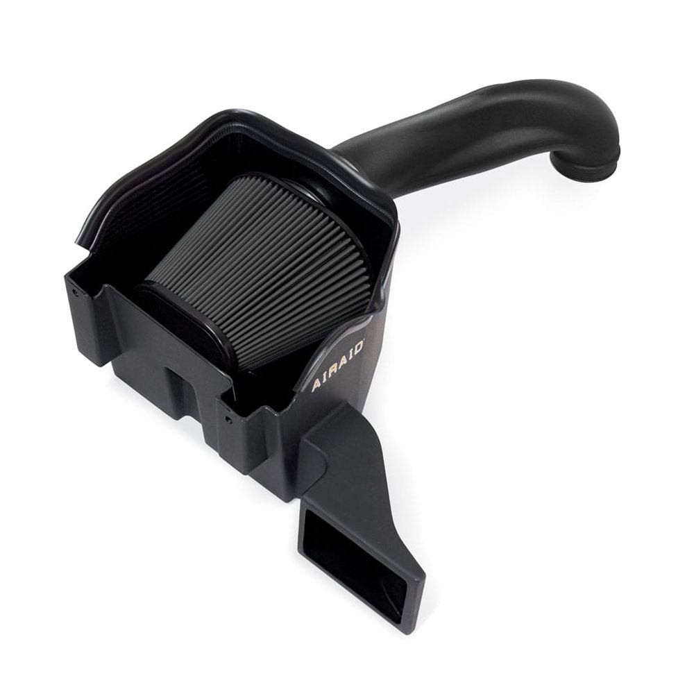 Housed inside the air box is an AIRAID premium air filter for outstanding air flow and filtration. Air is directed through a new air intake tube constructed of cross-linked, high-density polyethylene that is designed using extensive computer modeling to maintain proper mass air flow readings and calibration.