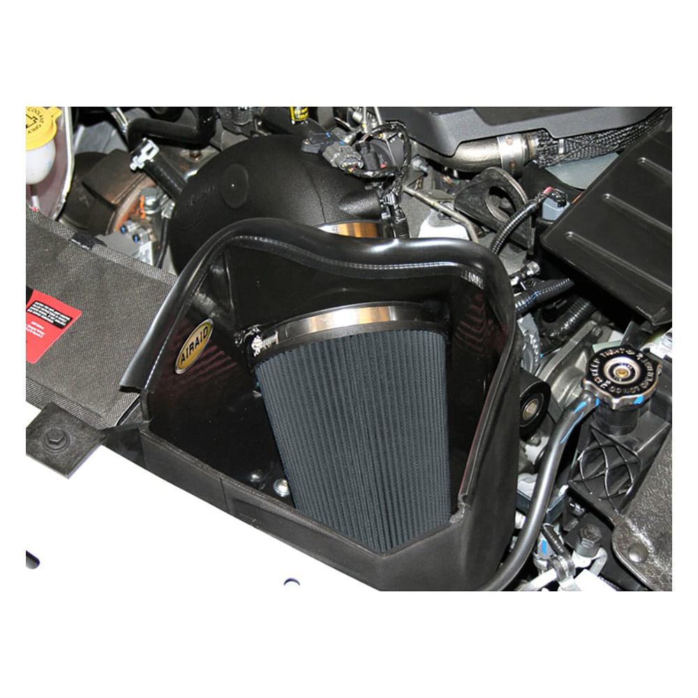 Housed inside the air box is an AIRAID premium air filter for outstanding air flow and filtration. Air is directed through a new air intake tube constructed of cross-linked, high-density polyethylene that is designed using extensive computer modeling to maintain proper mass air flow readings and calibration.