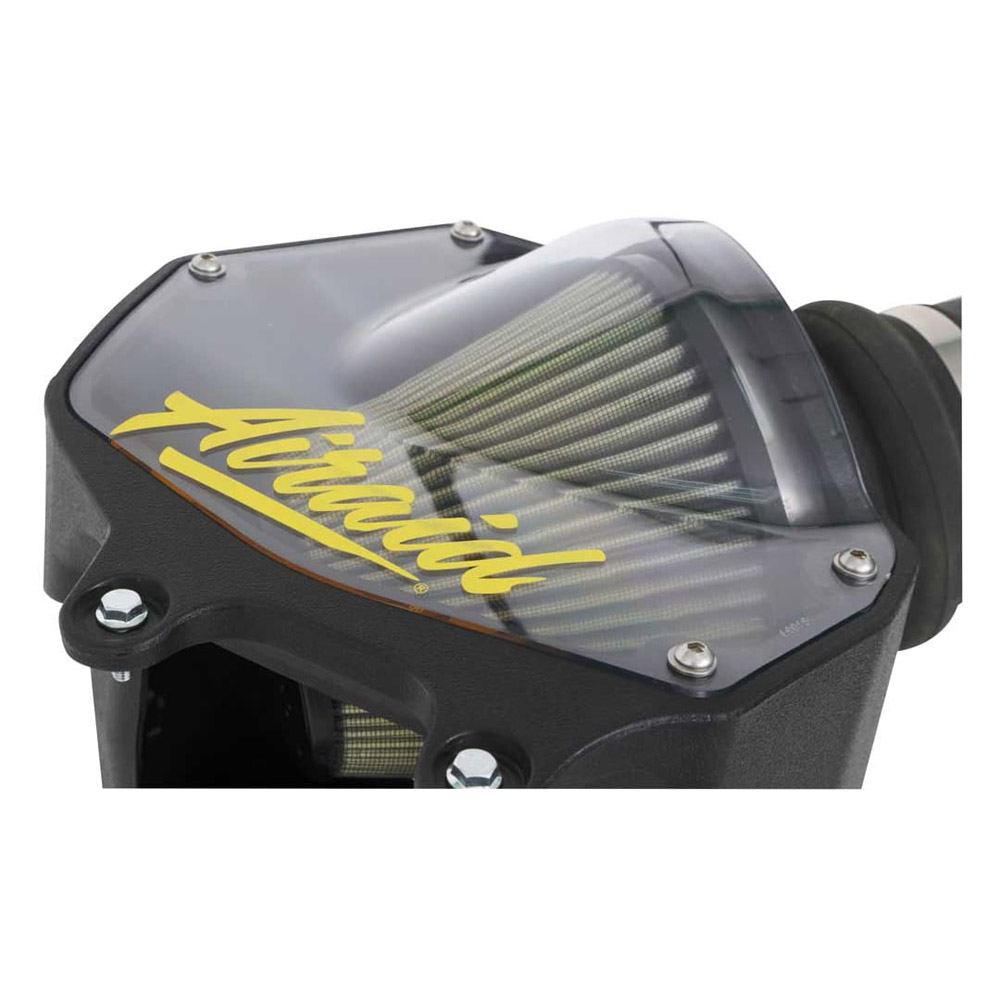 Housed inside the air box is an AIRAID premium air filter for outstanding air flow and filtration. Air is directed through a new air intake tube constructed of cross-linked, high-density polyethylene that is designed using extensive computer modeling to maintain proper mass air flow readings and calibration.