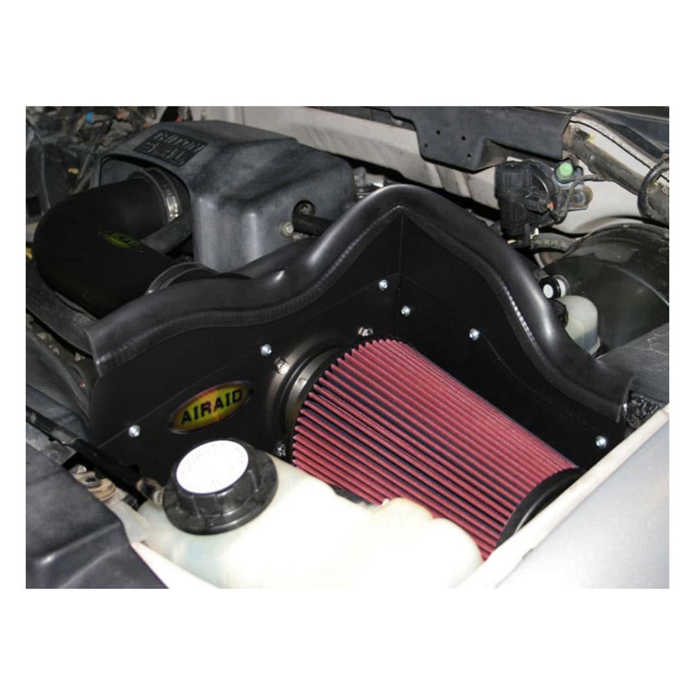 The AIRAID Cold Air Dam (CAD) Air Intake is engineered to give your engine larger amounts of cooler air to produce more horsepower and torque. The intake system retains the original location of the air filter but delivers a big boost with the addition of a huge open-element air inlet protected by Cold Air Dam panels that help to provide a steady, free-flowing supply of cooler outside air into your engine.