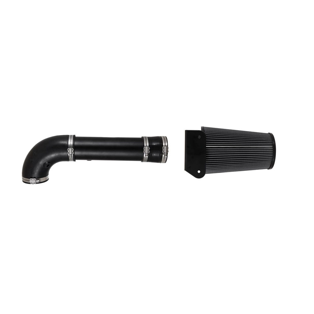 The addition of a steel intake tube further increases air flow boosting torque at the drop of the throttle. The intake tube also accommodates the vehicle’s factory emissions control devices such as the mass airflow sensor and breather/vacuum hoses where applicable.