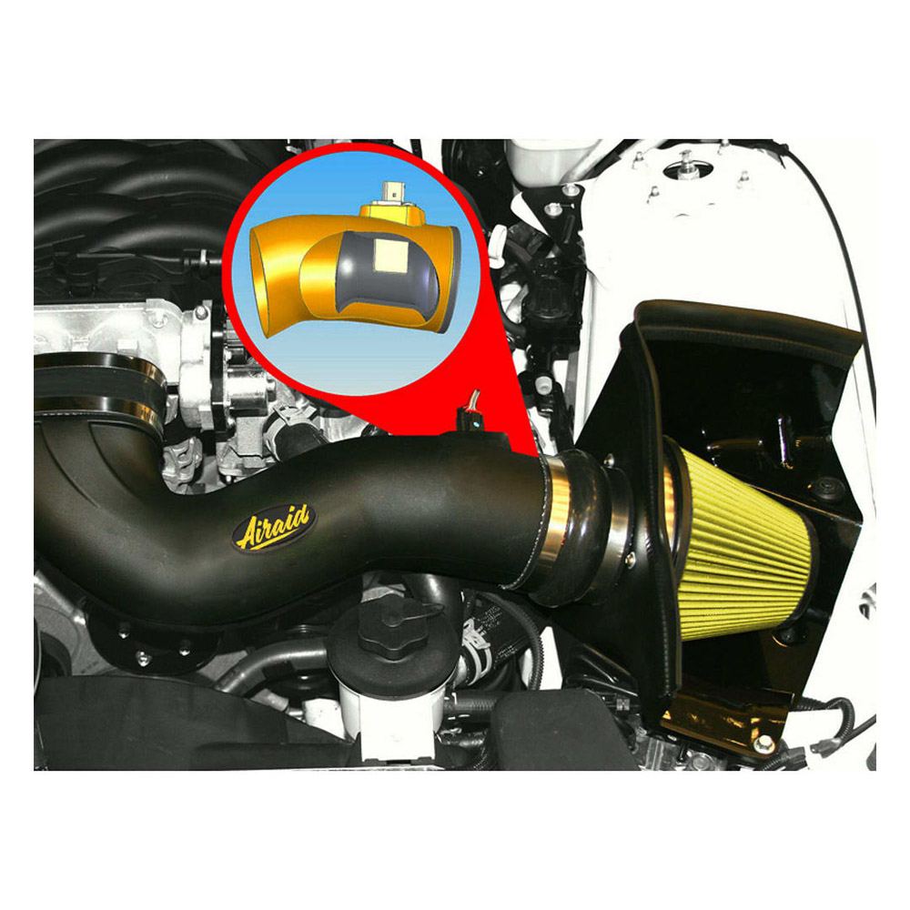 Housed inside the air box is an AIRAID premium air filter for outstanding air flow and filtration. Air is directed through a new air intake tube constructed of cross-linked, high-density polyethylene that is designed using extensive computer modeling to maintain proper mass air flow readings and calibration.