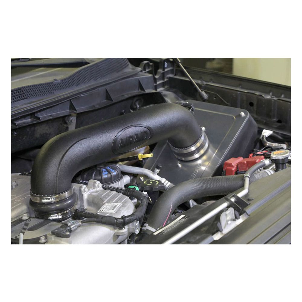 Housed inside the air box is an AIRAID premium air filter for outstanding air flow and filtration. Air is directed through a new air intake tube constructed of cross-linked, high-density polyethylene that is designed using extensive computer modeling to maintain proper mass air flow readings and calibration.