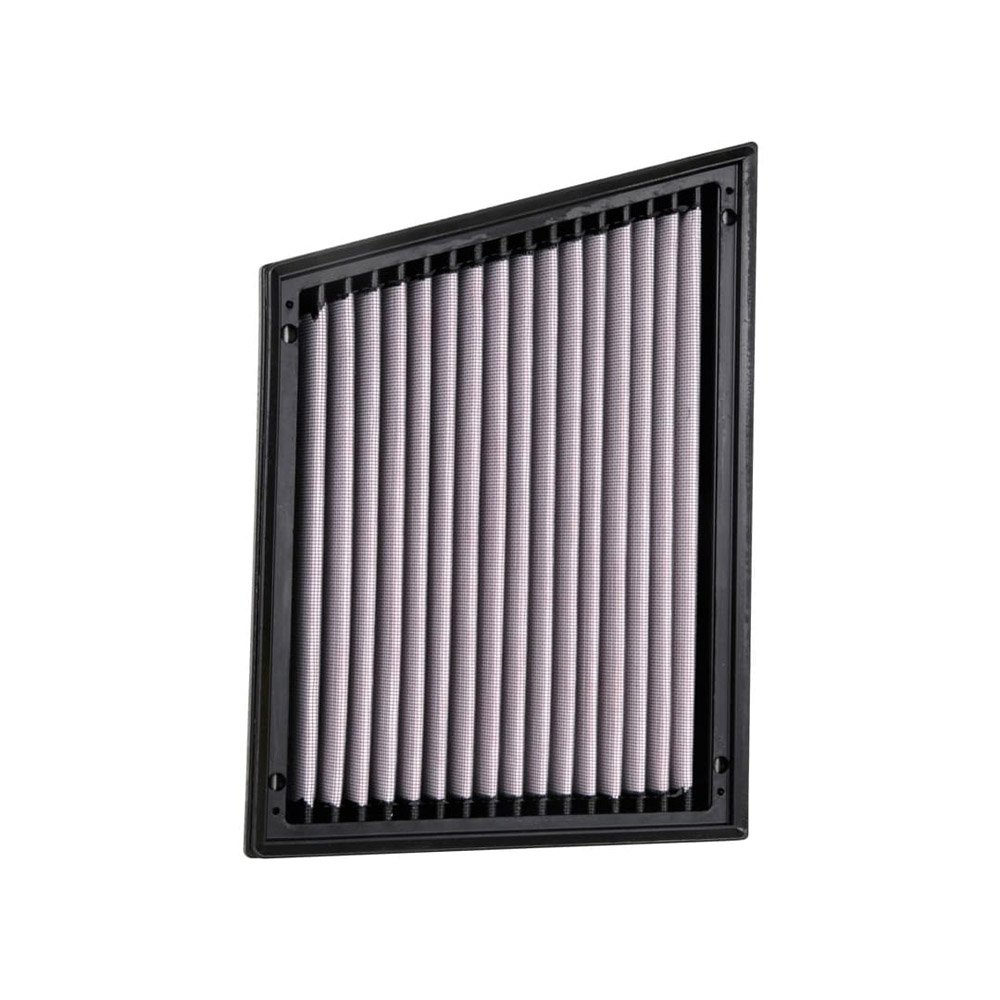 The air filter is constructed with multiple layers of filter media and provides significant improvements in air flow and filtration compared to typical replacement filters with the added benefit of being washable and reusable.