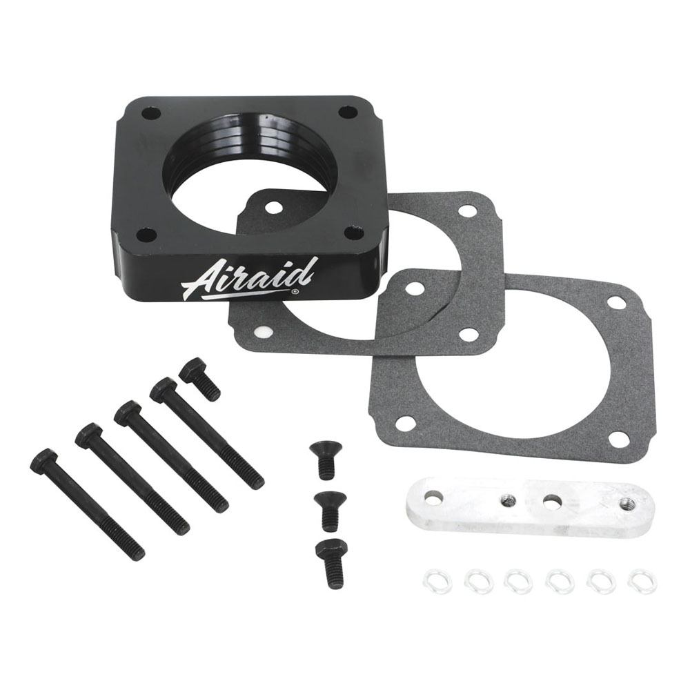 The AIRAID Throttle Body Spacer is designed to enhance off-idle torque from 800 rpm to approximately 3,000 rpm. The spacer utilizes it’s unique, patented Helix Bore design to spin the incoming air charge as it passes through the throttle body spacer.
