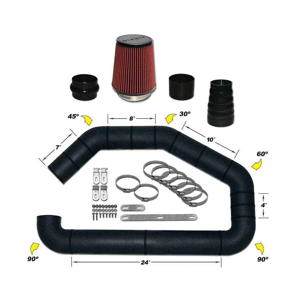 This UBI Master Kit features 3-1/2 inch outside diameter roto-molded intake tubes with multiple angles and straight pipes that you can cut off in any way allowing you to route the intake to any desired location in the engine compartment.