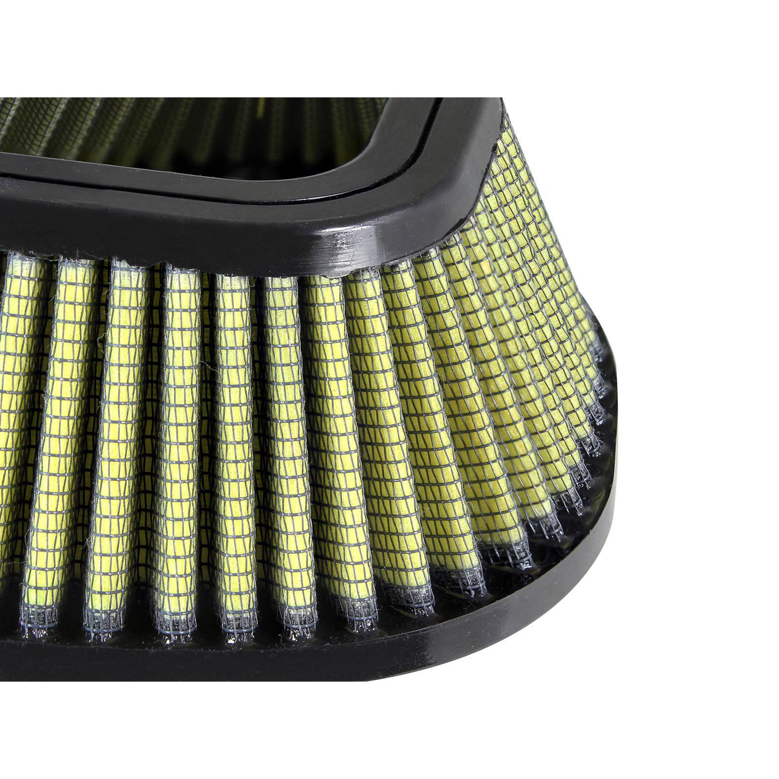 The aFe Pro-Guard 7 performance air filter represents the next generation of performance filtration. The Pro-GUARD 7 air filter is constructed of pliable urethane with a bump seal for a leak free seal. The filter media is constructed of 7-layers, 5-layers of progressive cotton gauze and 2-layers of synthietic dry media for maximum filtration. This filter is for riders that choose to ride in the most extreme conditions. Deeper, rounder pleats offer more filtering area than other foam or cotton gauze filters.