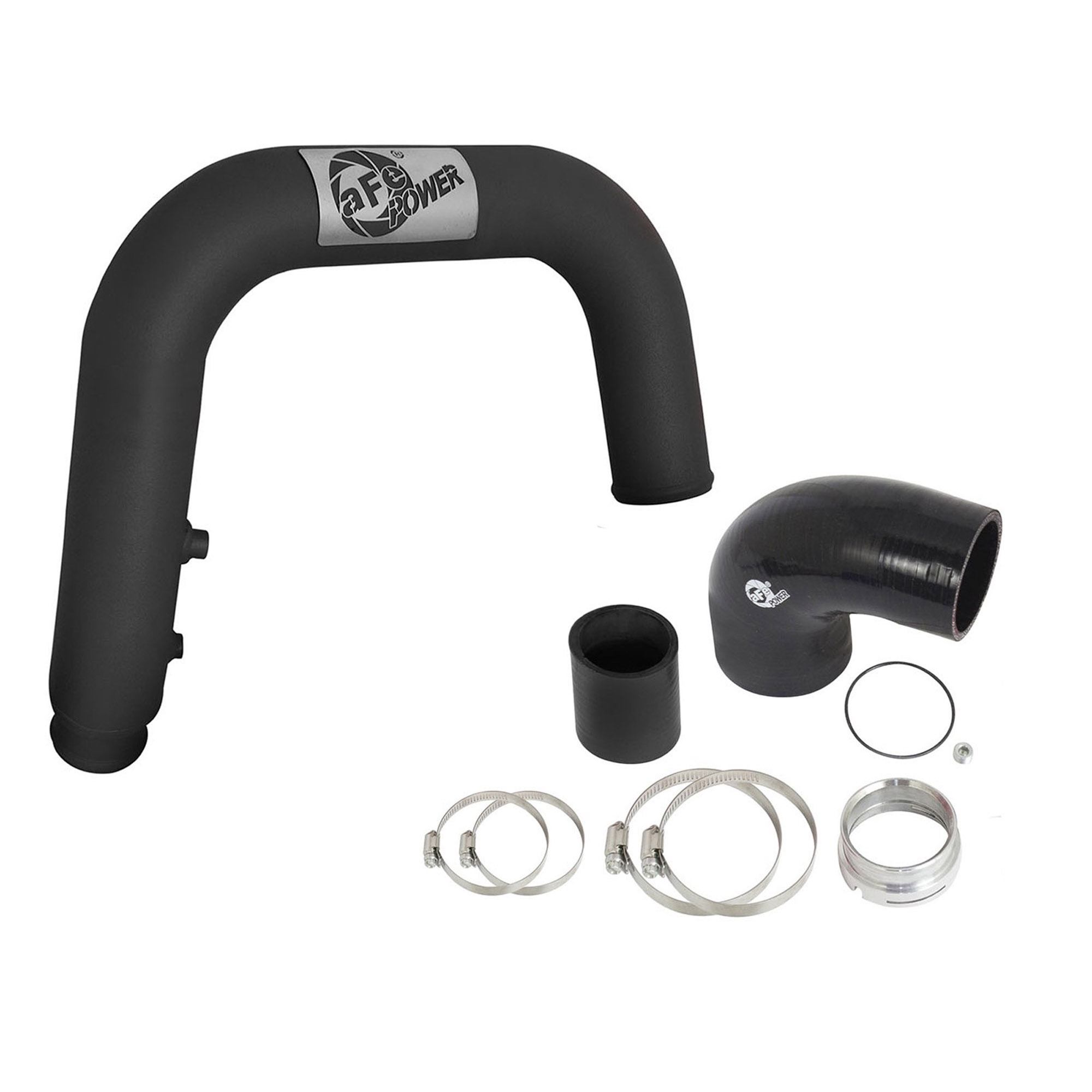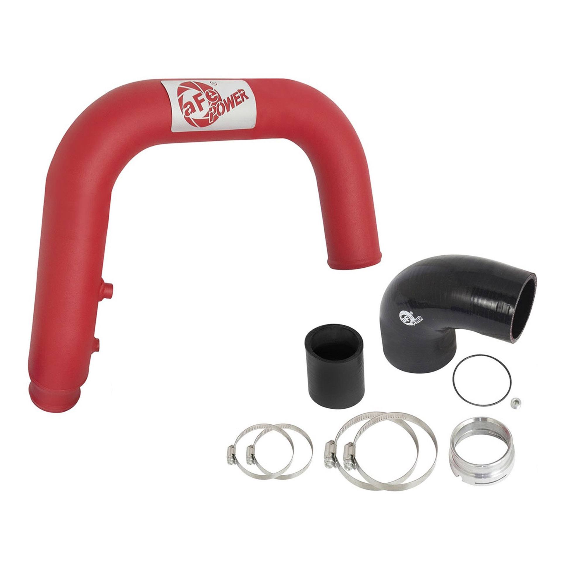 aFe POWER intercooler tube are constructed from 2-1/2″ (Hot Side) mandrel-bent aluminum tubing for maximum flow then, powder-coated for a nice finish. The high-temp wrinkle-black and textured-red powder-coating also insulates the tube from engine heat and protects the tube from corrosion. The smooth transition bends decrease turbulence, minimize pressure loss, while increasing horsepower and torque. Also included is one 1/8″ NPT port on each tube which is provided for a sensor or water-methanol injection.
