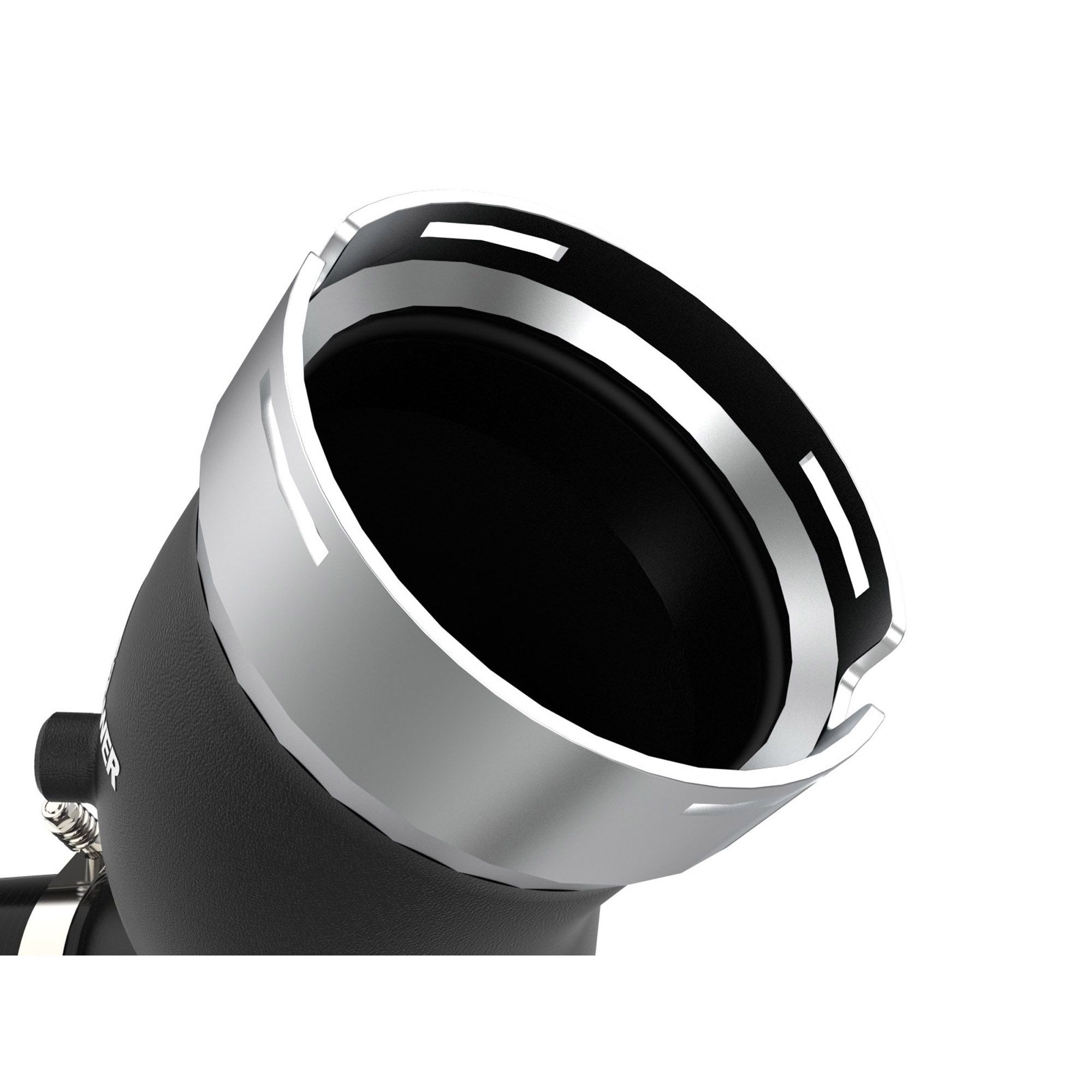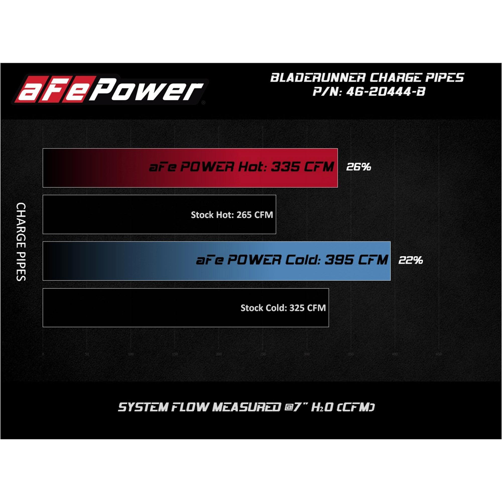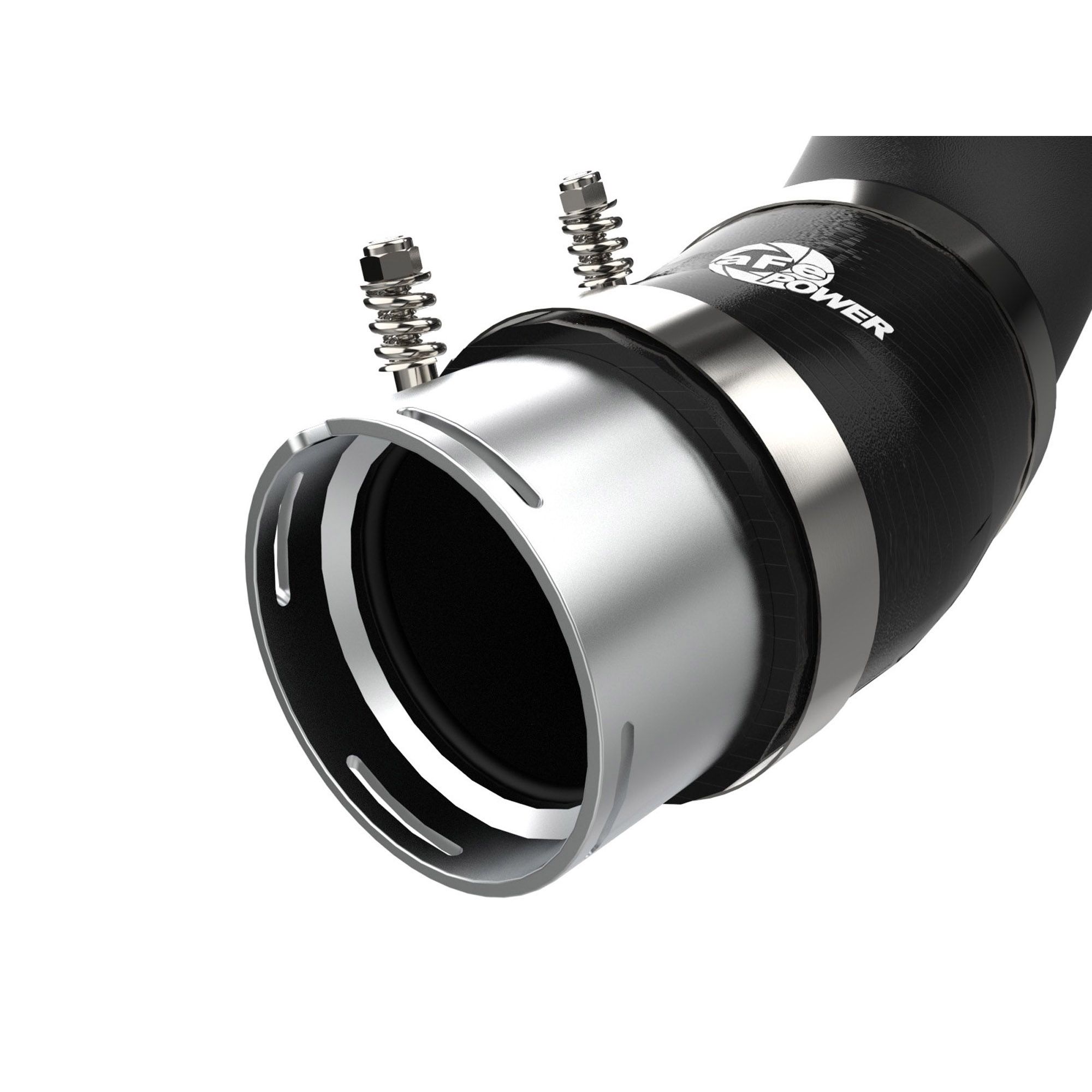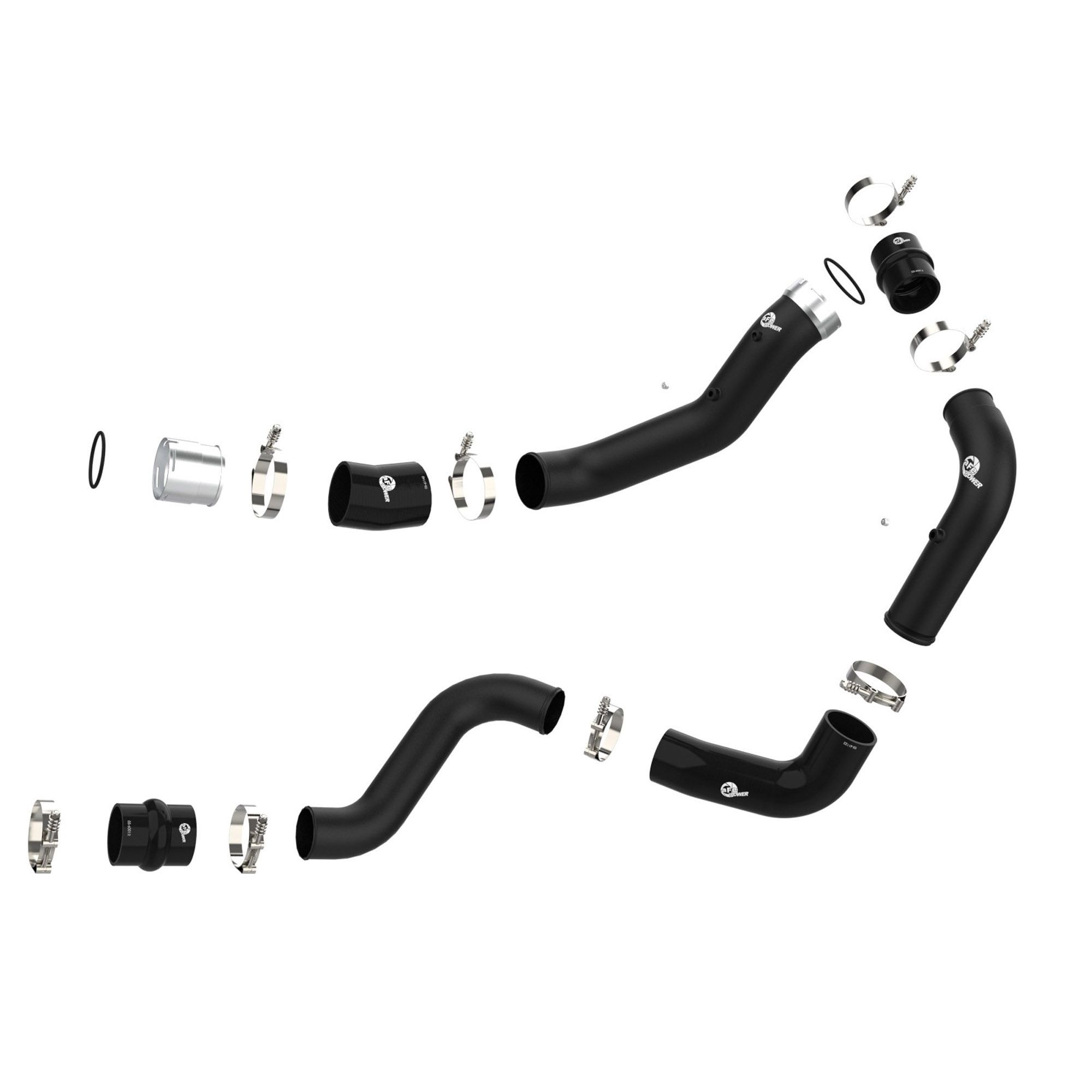 Directly replace your Duramax’s restrictive plastic charge pipes with aFe’s BladeRunner free-flowing, heat-resistant aluminum tubes.