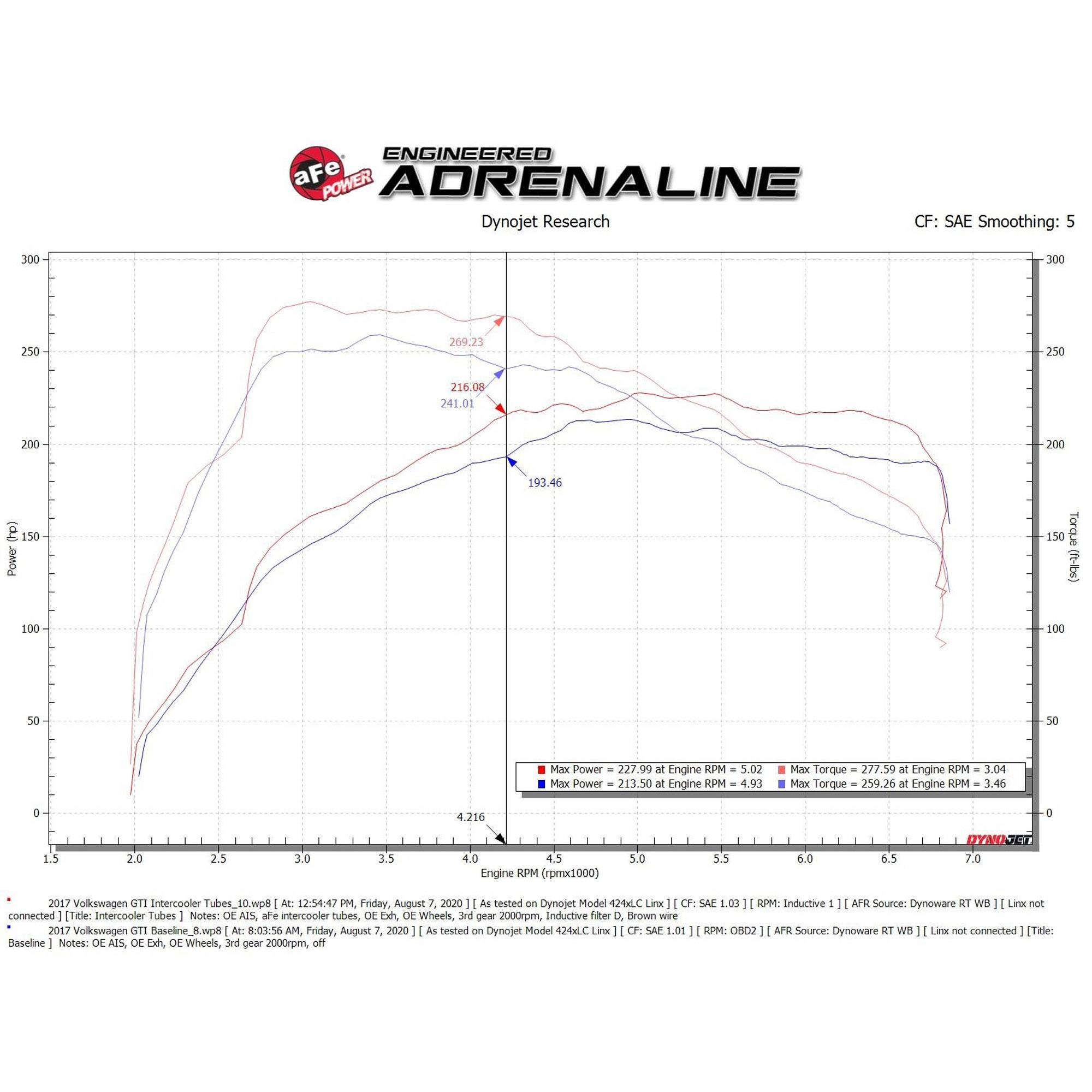 Directly replace your VW’s restrictive plastic intercooler tubes with aFe’s BladeRunner free-flowing, heat-resistant aluminum tubes.