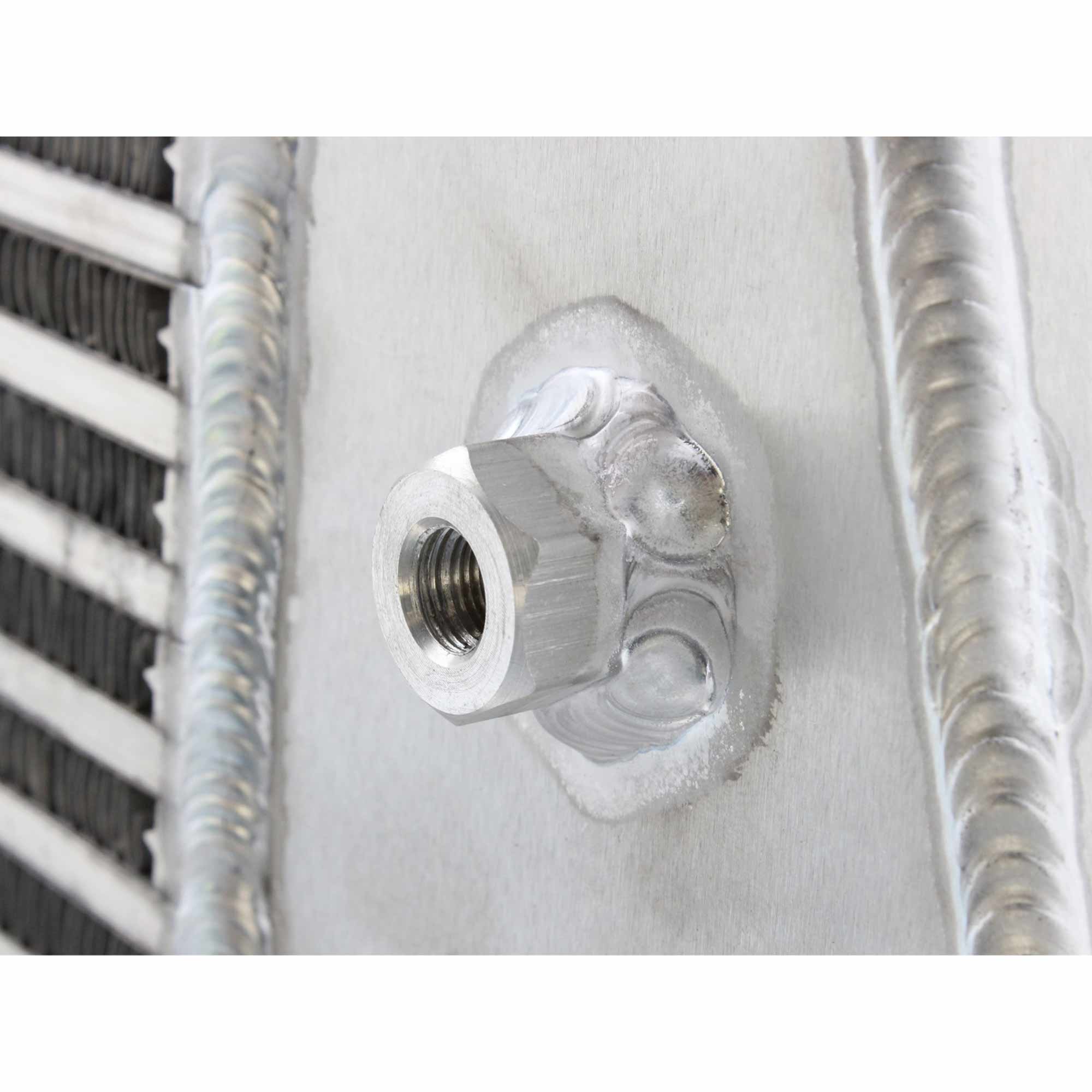 Multiple Auxiliary Ports: Four tapped 1/8″ ports are supplied on the intercooler for easy installation of gauges or nitrous oxide systems.