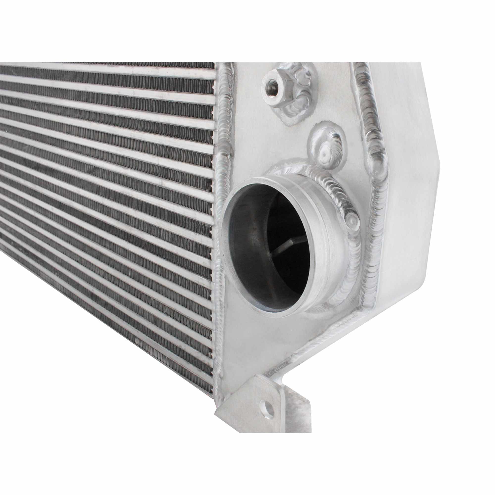 2.5″ Bar and Plate Core Design: The use of the bar and plate core design allows for greater airflow and increased heat dissipation over the much smaller tube and fin design used by the OEM.