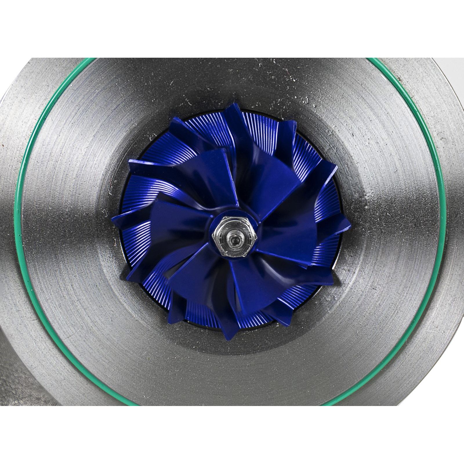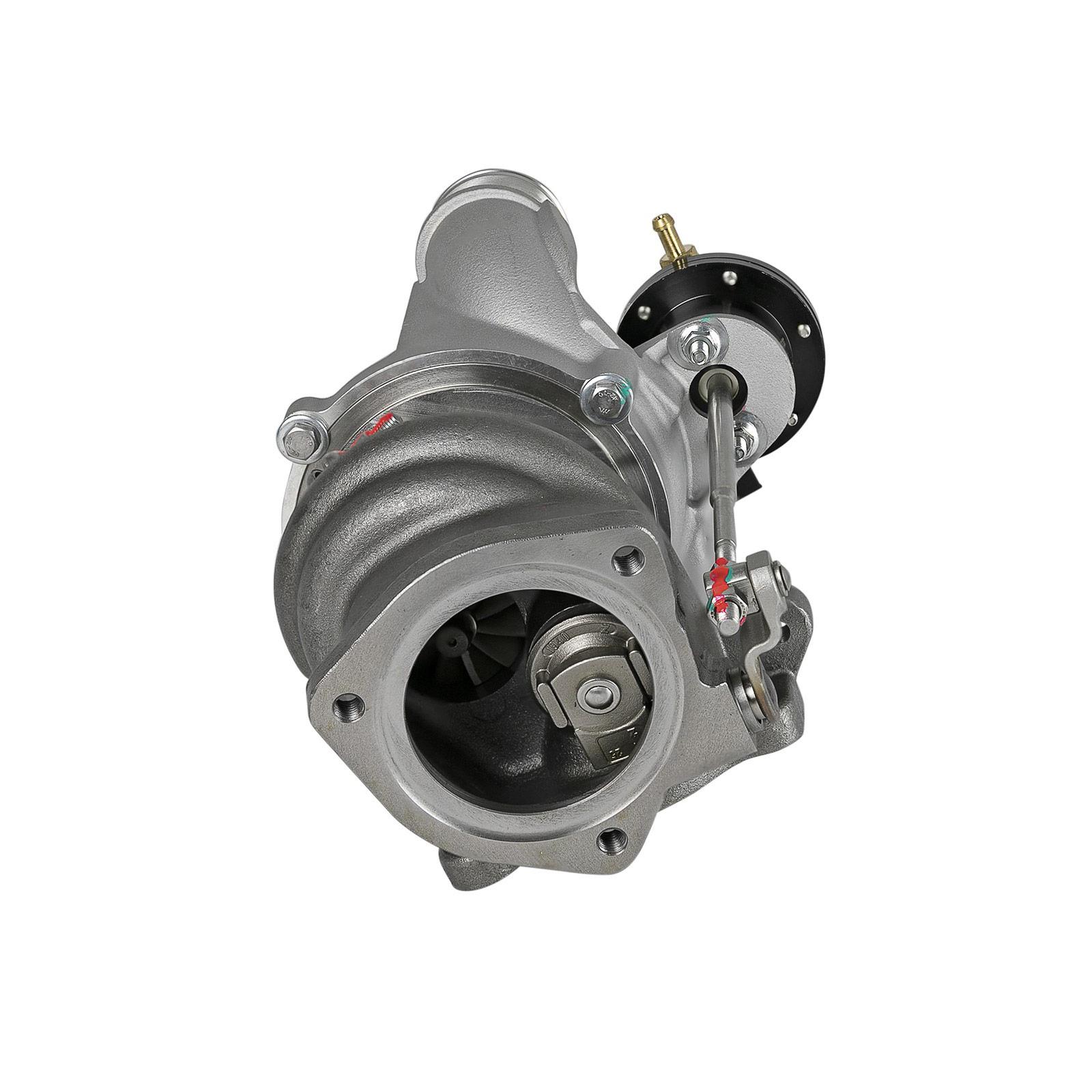 The compressor features a blue anodized 6/12 bladed billet aluminum wheel that is lighter and stronger than the stock cast wheel to help provide quicker “spool-up” and higher air flow than the stock turbo.