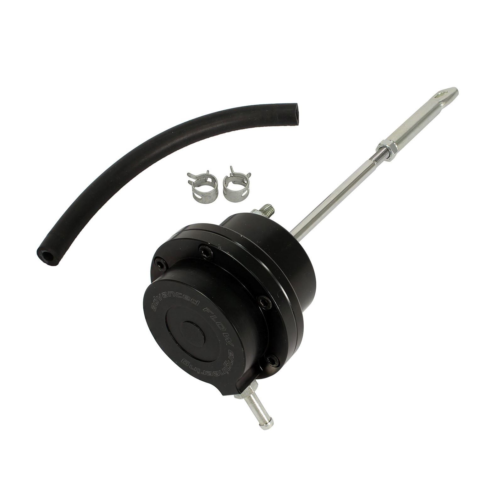 aFe POWER BladeRunner GT Series Wastegate Actuator upgrade for Ford Diesel Trucks 99.5-03 with V8-7.3L (td) engine is constructed out of light weight black anodized CNC 6061 billet aluminum for maximum strength and style, with locking jam nut for precise boost pressure settings. This unit come preset to factory settings and require no modification of turbocharger for a hassle-free installation.
