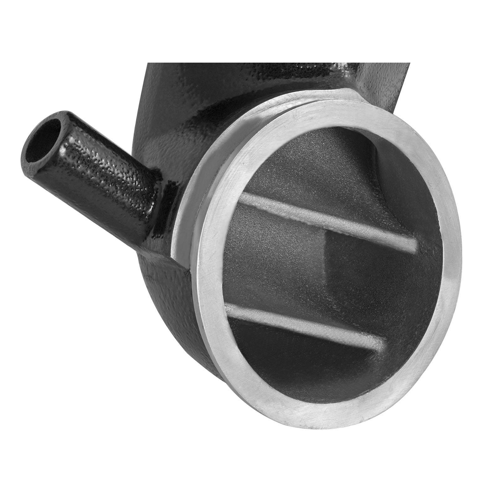 This turbo inlet manifold is constructed of durable cast aluminum and has a machined inlet/outlet.