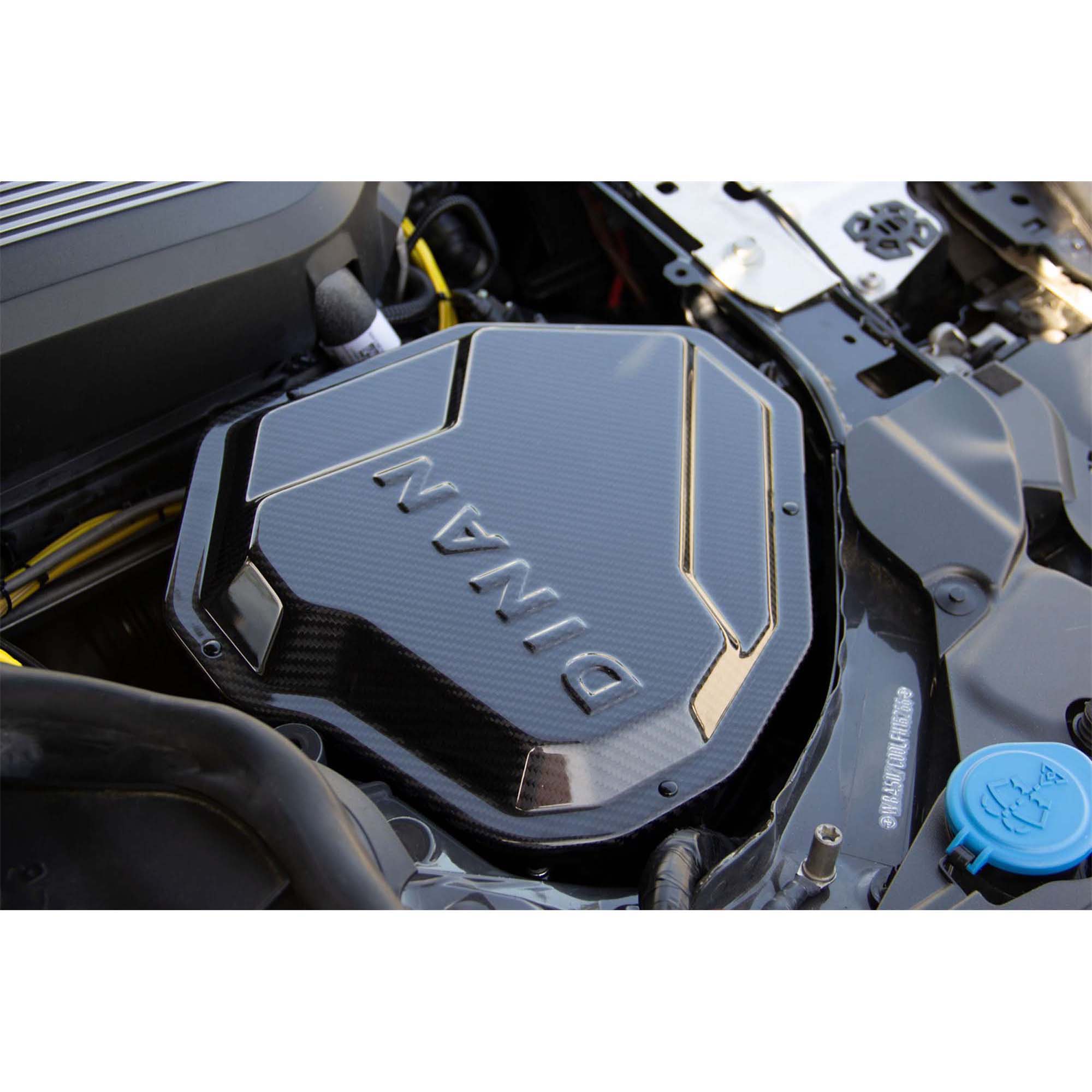 A stark difference from Dinan’s traditional fully sealed systems where induction noise is not nearly as recognizable. Not to be outdone by the increased power and sound, the outwardly visible system is made of immaculate carbon fiber so the under the hood appeal is vastly improved over its drab and utilitarian beginnings. A worthy piece to add to an already impressive vehicle.