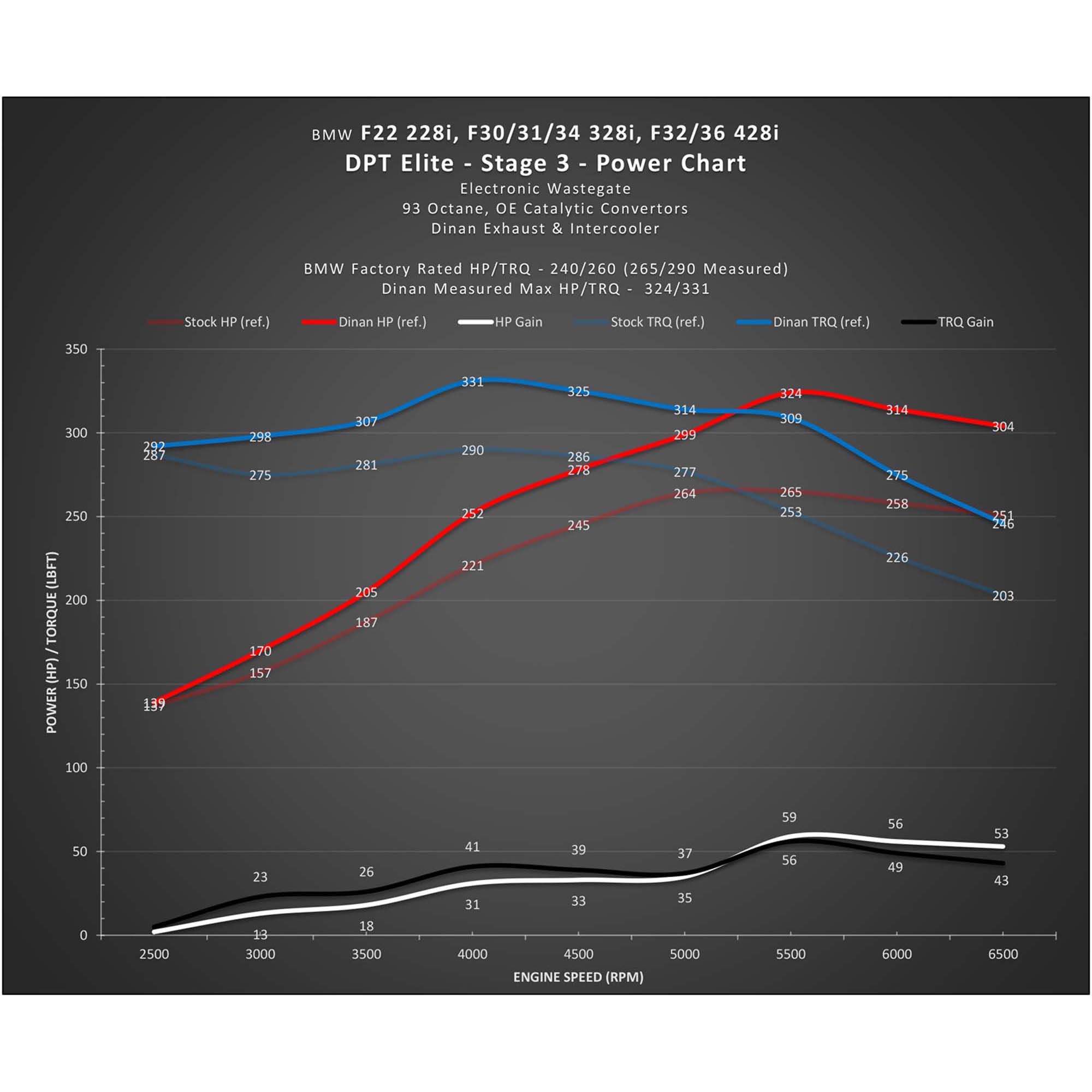 The DINANTRONICS Elite Performance Tuner is a highly engineered piece of computer hardware and software that enhances engine performance to levels the stock programming is not allowed to venture into. It does this without negatively affecting your new car warranty coverage and without affecting long term reliability or the functionality of on-board diagnostic systems. It is also the only tuning device designed to be emissions legal in all 50 states. These items are unique to Dinan and together they embody the apex of performance engineering in a powerful reliable and warrantied package.