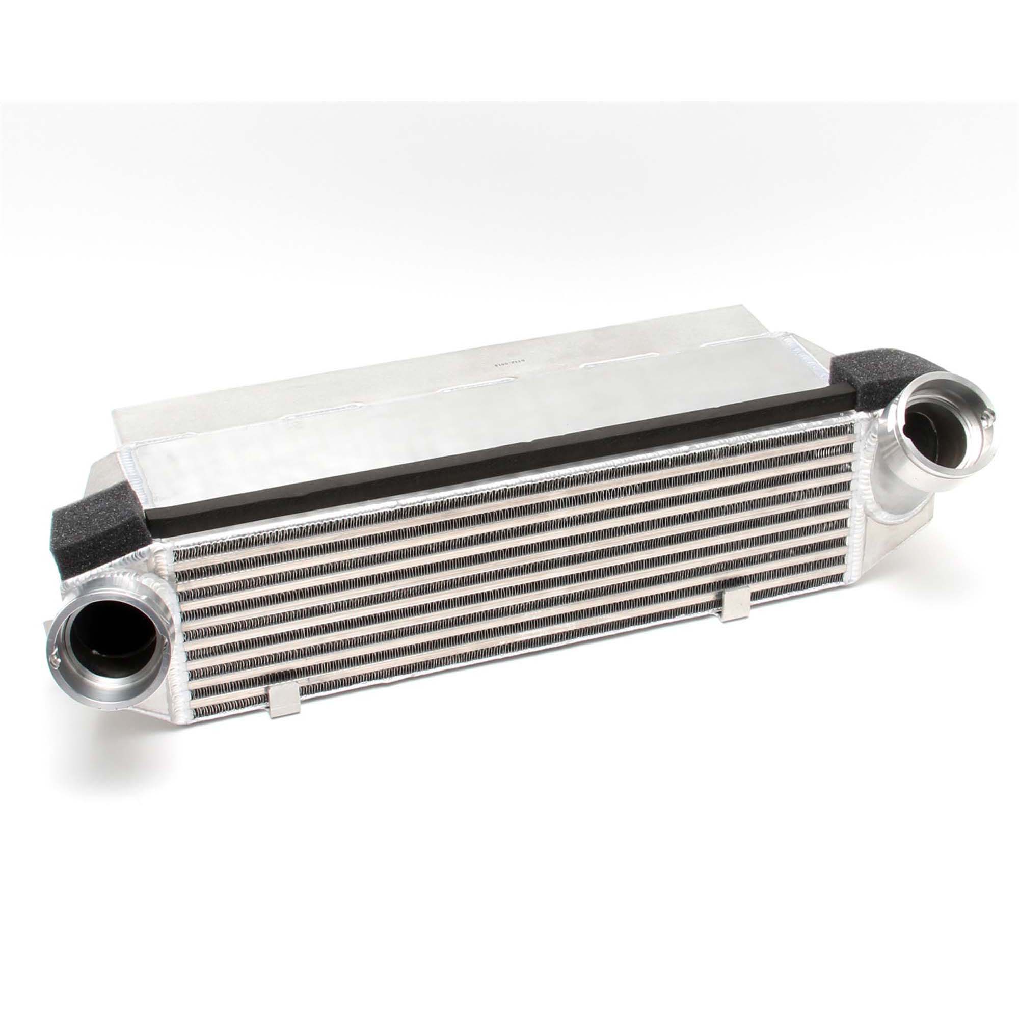Greater power gains are achieved with a larger high-performance intercooler. The Dinan intercooler offers double the volume of the stock unit, substantially reducing the pressure drop by 0.7 psi, as well as providing more efficient heat exchange.
