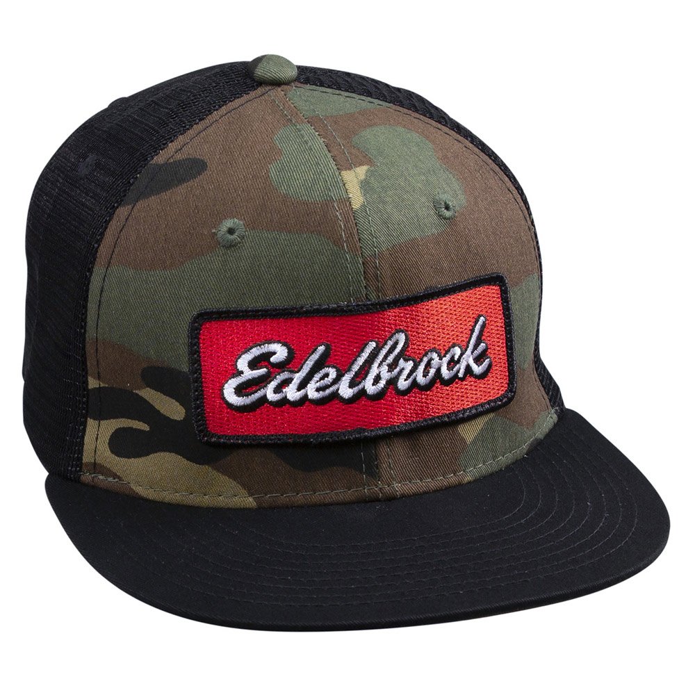 The Edelbrock CAMO Mesh Snapback hat is 50% Acrylic / 50% Nylon with the Edelbrock Classic Script Embroidery on the front. This 6-Panel snapback is adjustable for all sizes.