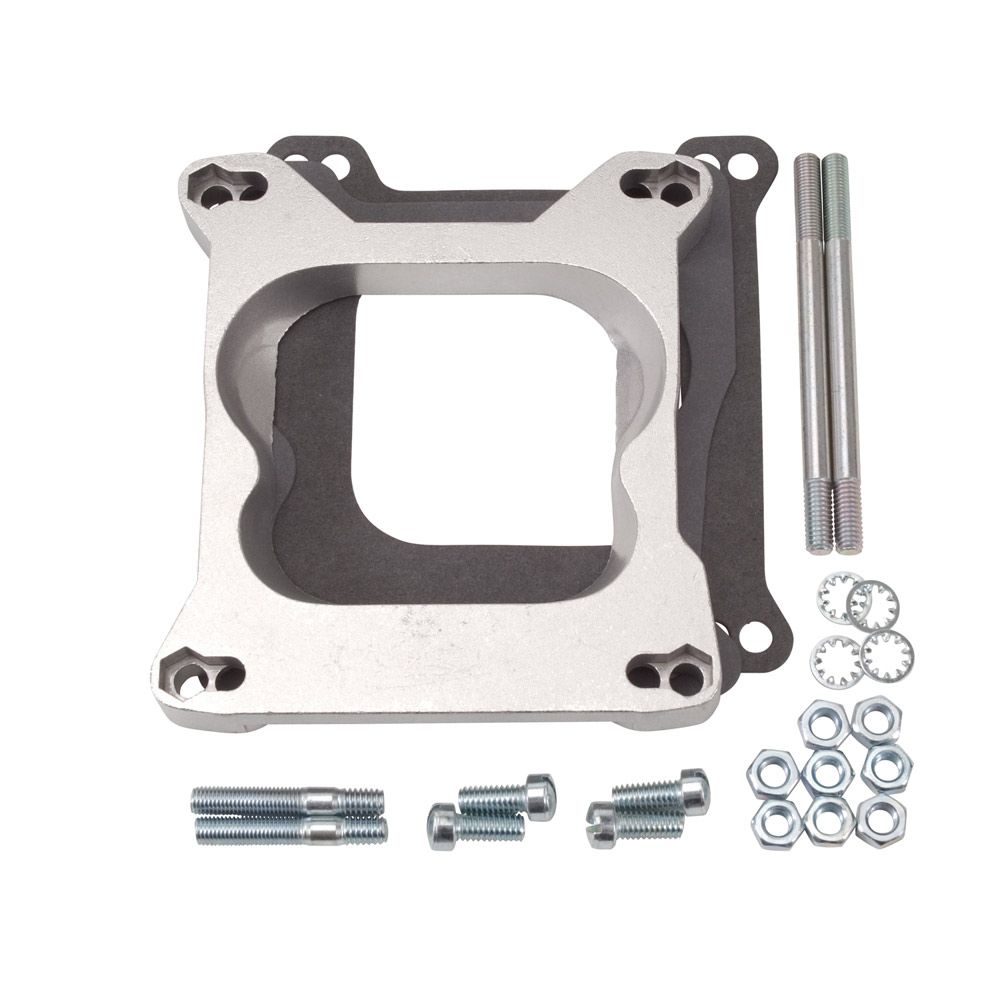 The Edelbrock Carburetor Adaptor #2692 is designed mounts 4-bbl. Rochester Quadra jet carburetors to square-bore, single plane intake manifolds.